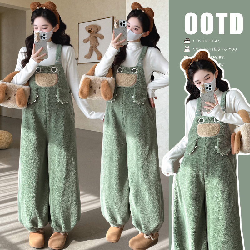 实拍有 货 秋冬半高领针织上衣+韩版减龄羊羔毛背带裤