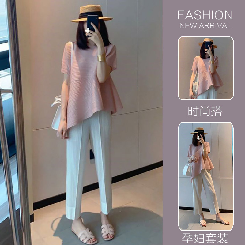 現物妊婦塩系カジュアル女性夏tシャツ上着a字半身傘スカート2点セット