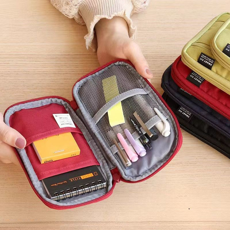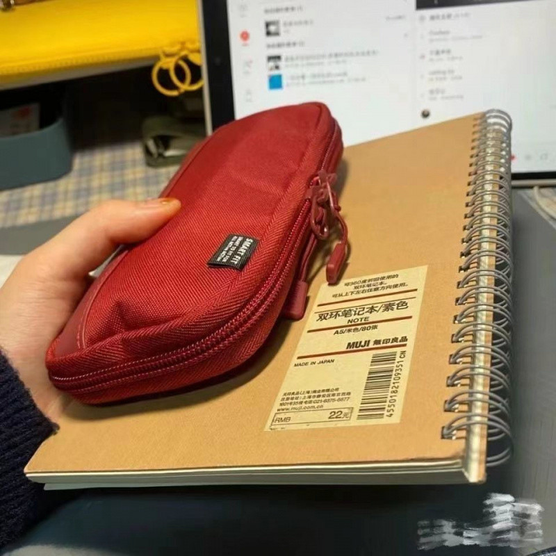 日系简约复古红笔袋潮少女双层收纳包多功能文具袋高中生