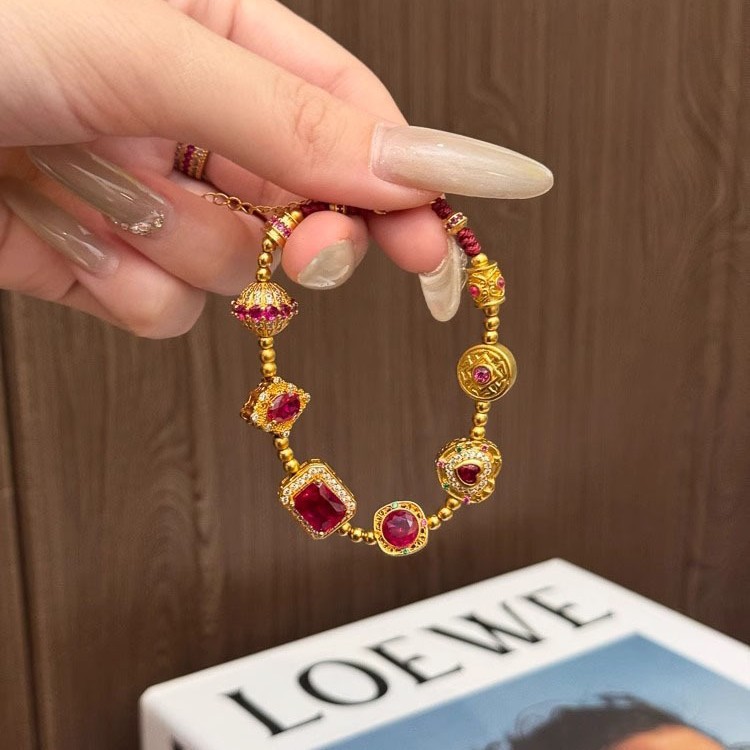 小红书爆款红心玲珑手链女新中式轻奢红色锆石重工奢华高级感拉满