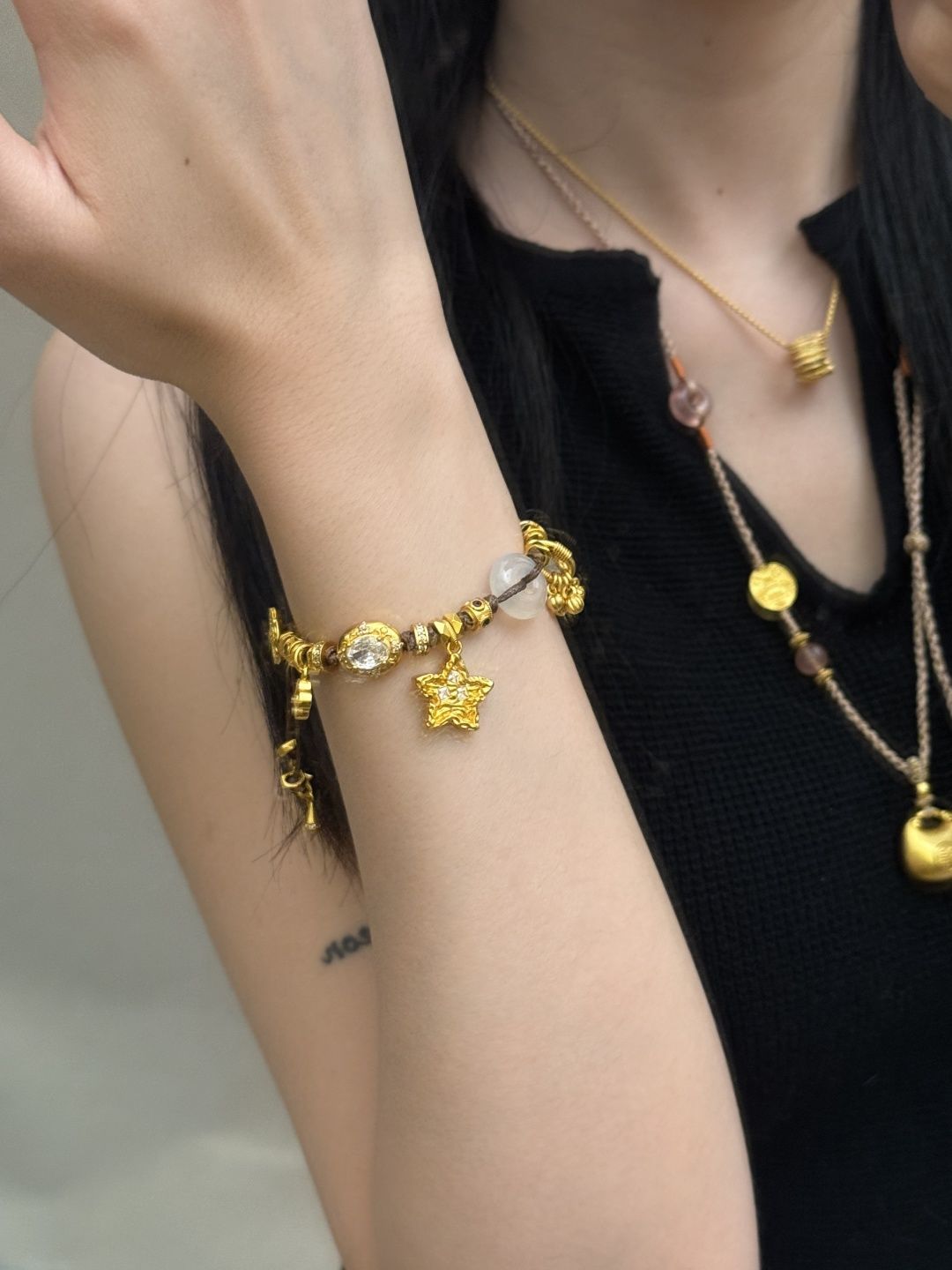 黄财神金色新中式檀木手串气质高颜值百搭气质小众设计时尚手链