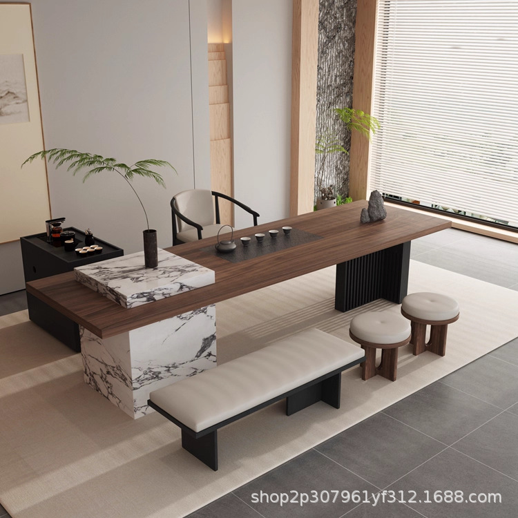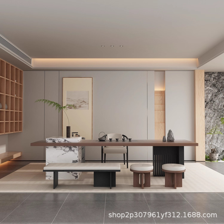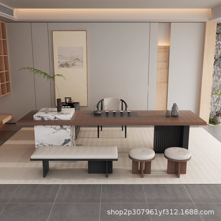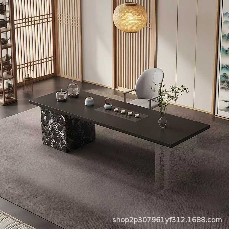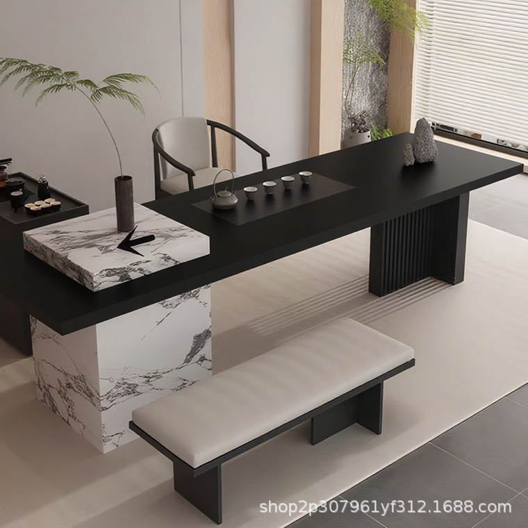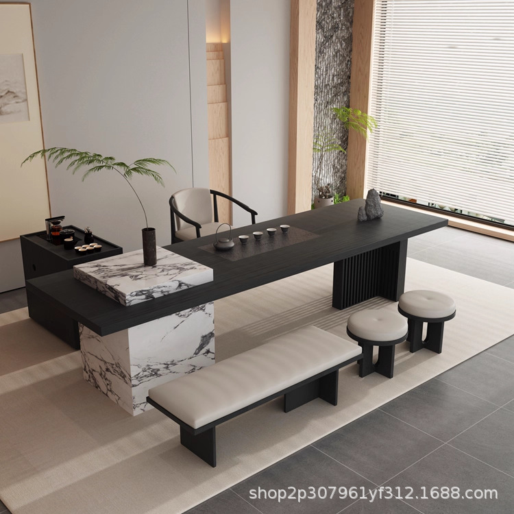 意式现代极简岩板新中式茶桌2025新款高端岛台茶轻奢茶室家具定做