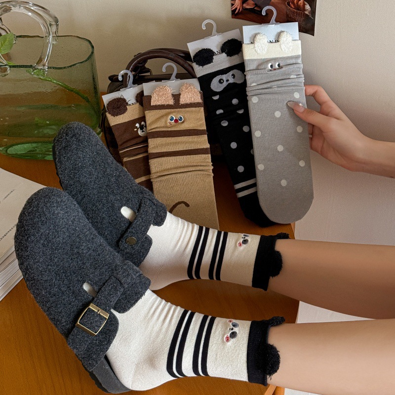 无骨韩国风纯棉中筒袜女士日系秋冬季直板卡通动物学院风可爱袜子