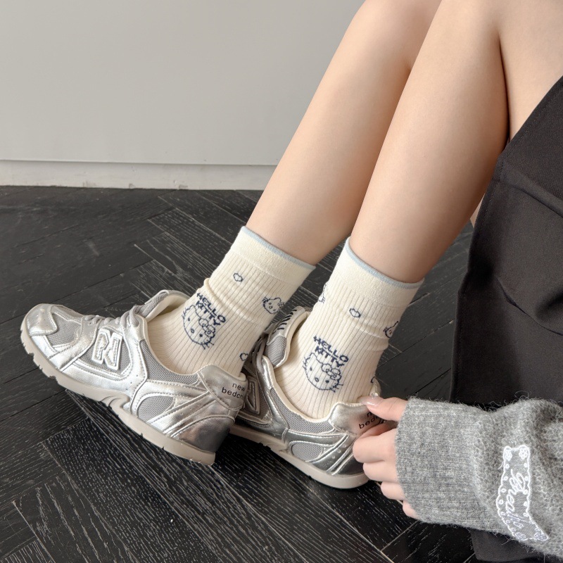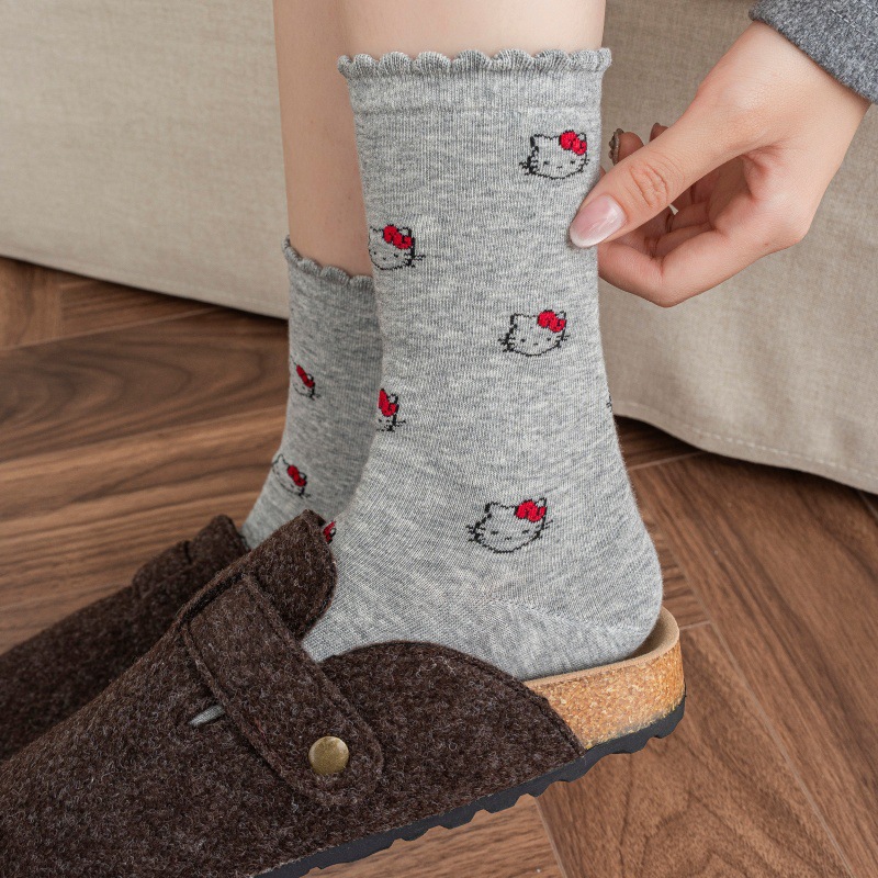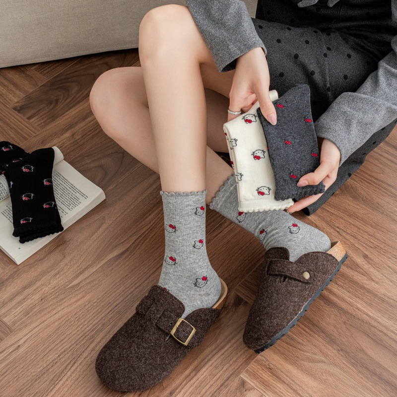 秋冬新款女中筒袜KT猫布标纯棉无骨堆堆袜少女学院风诸暨袜子批发