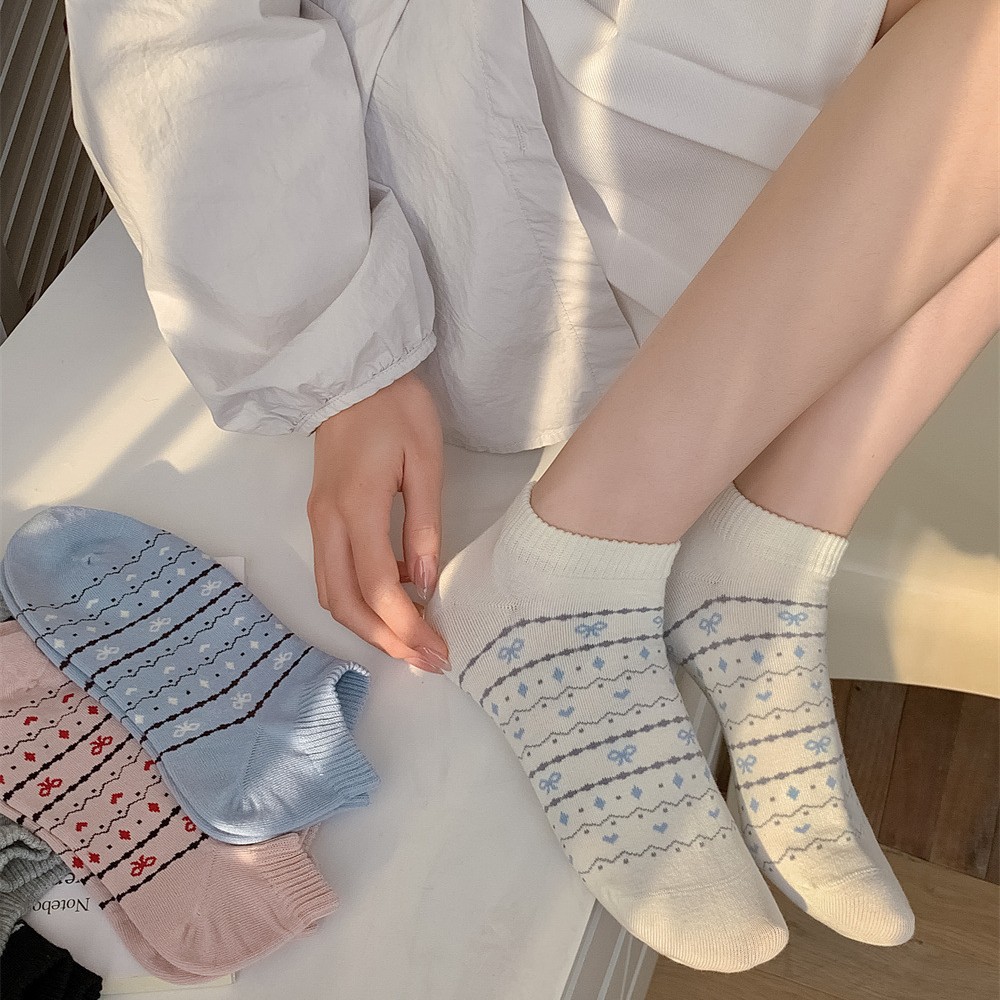 ボンレスコットンフェアアイルソックス春と夏の薄い通気性のあるリボンソックス女性のための多用途カレッジスタイル浅い口ボートソックス