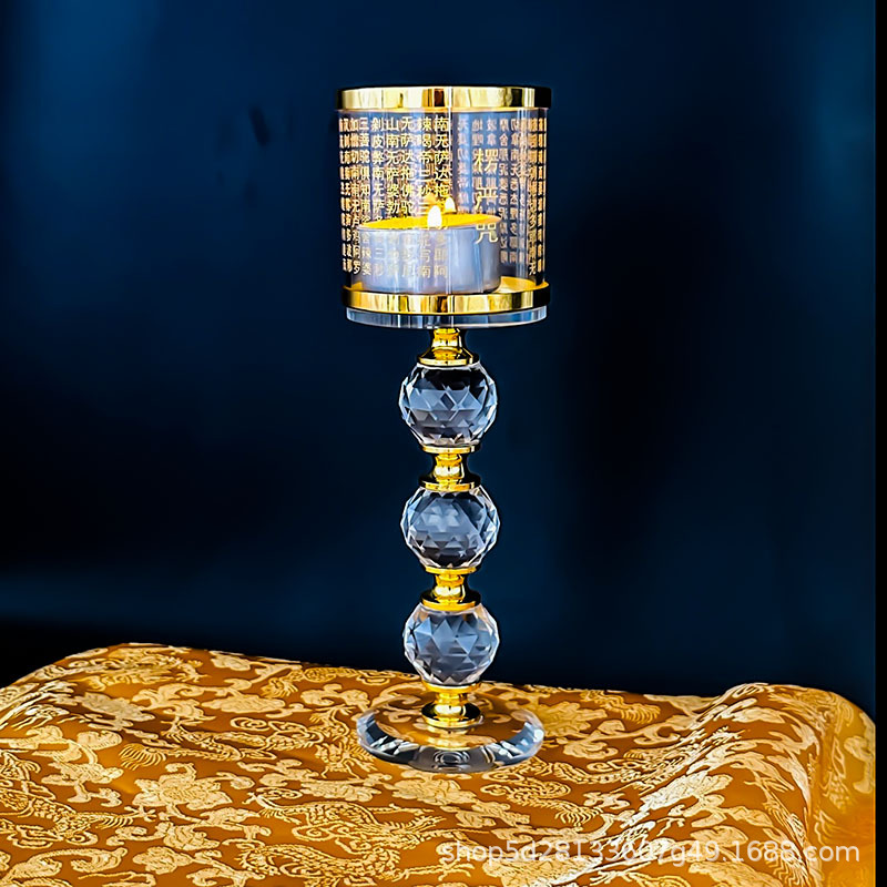 水晶玻璃灯座蜡烛台带防风罩佛前供灯大悲咒家用烛台摆件供佛灯