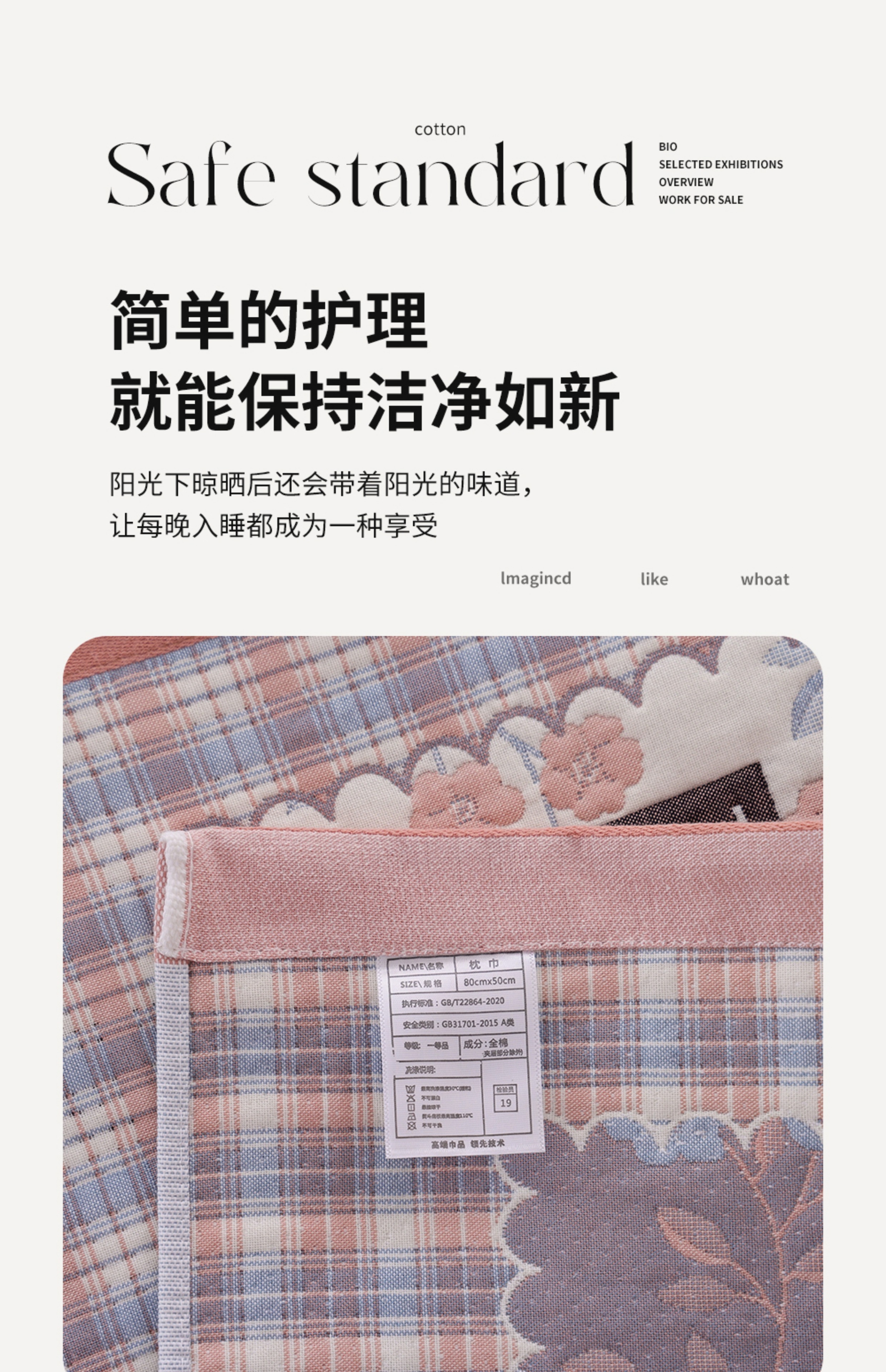純綿枕巾メーカー直供新型レトロ潮吸汗枕巾五層ガーゼ綿通気枕巾卸売り