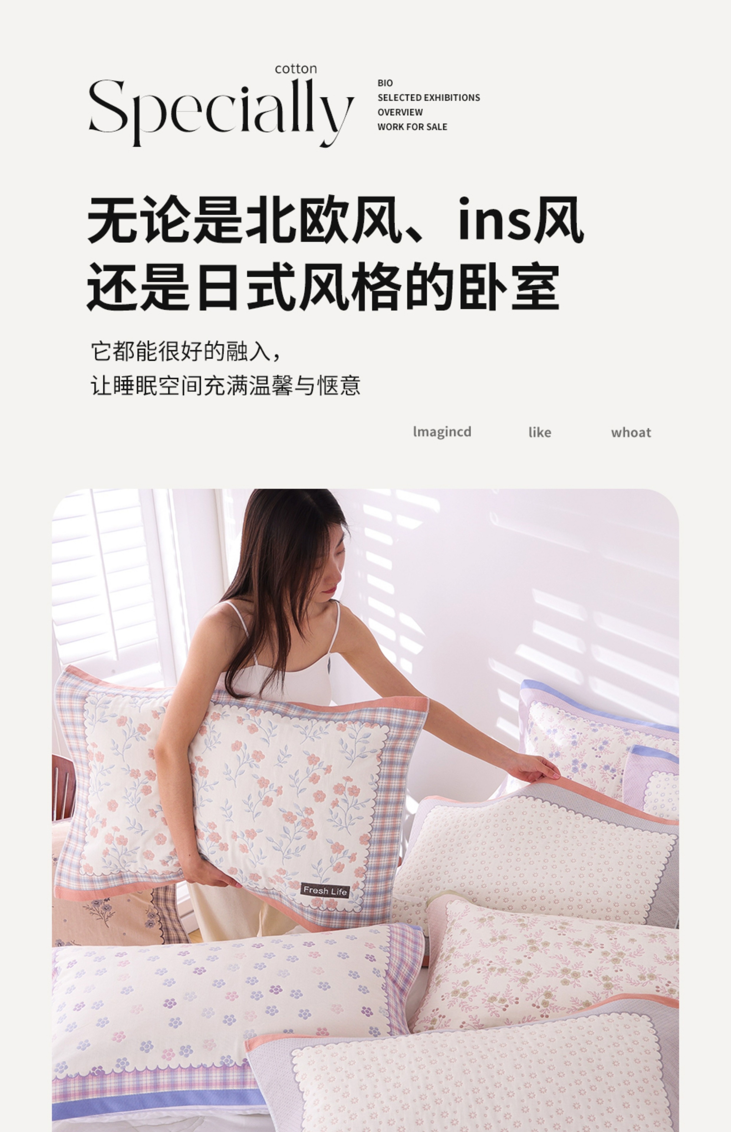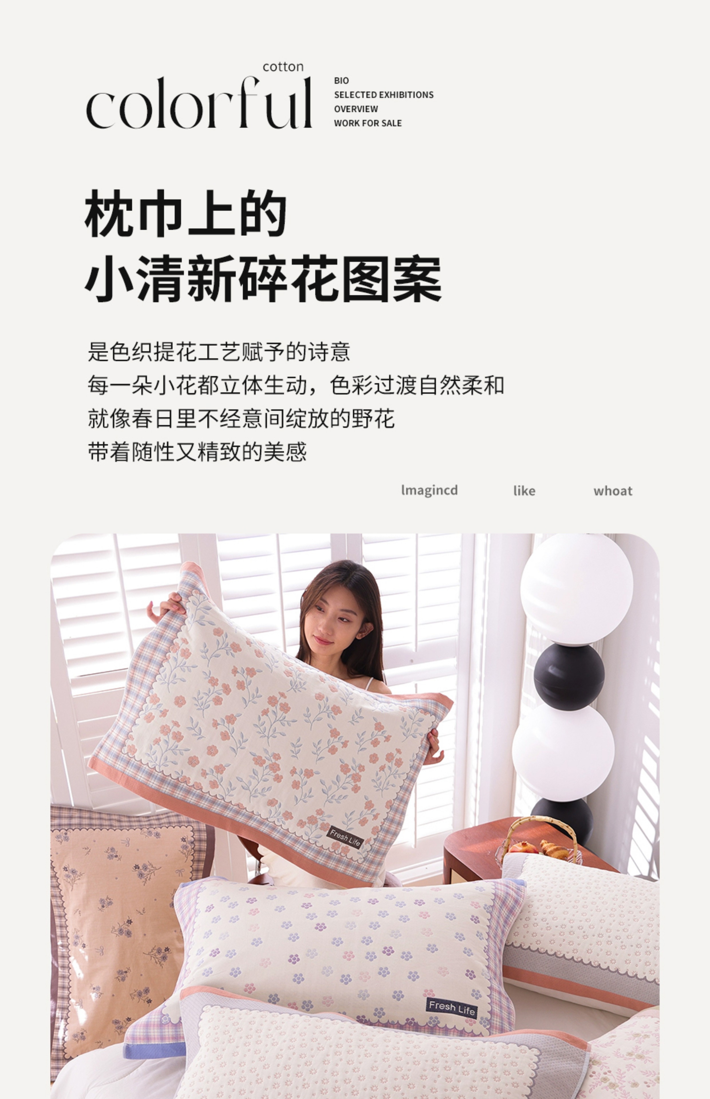 高密纯棉纱布枕巾一对装全棉成人枕头巾吸汗透气学生宿舍花色多样