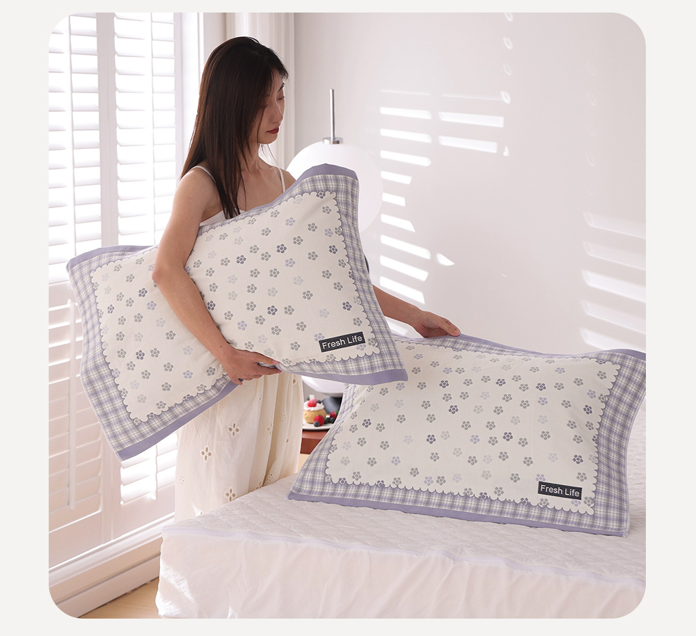 A級四層ガーゼ枕カバー、純綿両面、カップル向け、家庭用、学生向け、卸売、通気性、肌に優しい