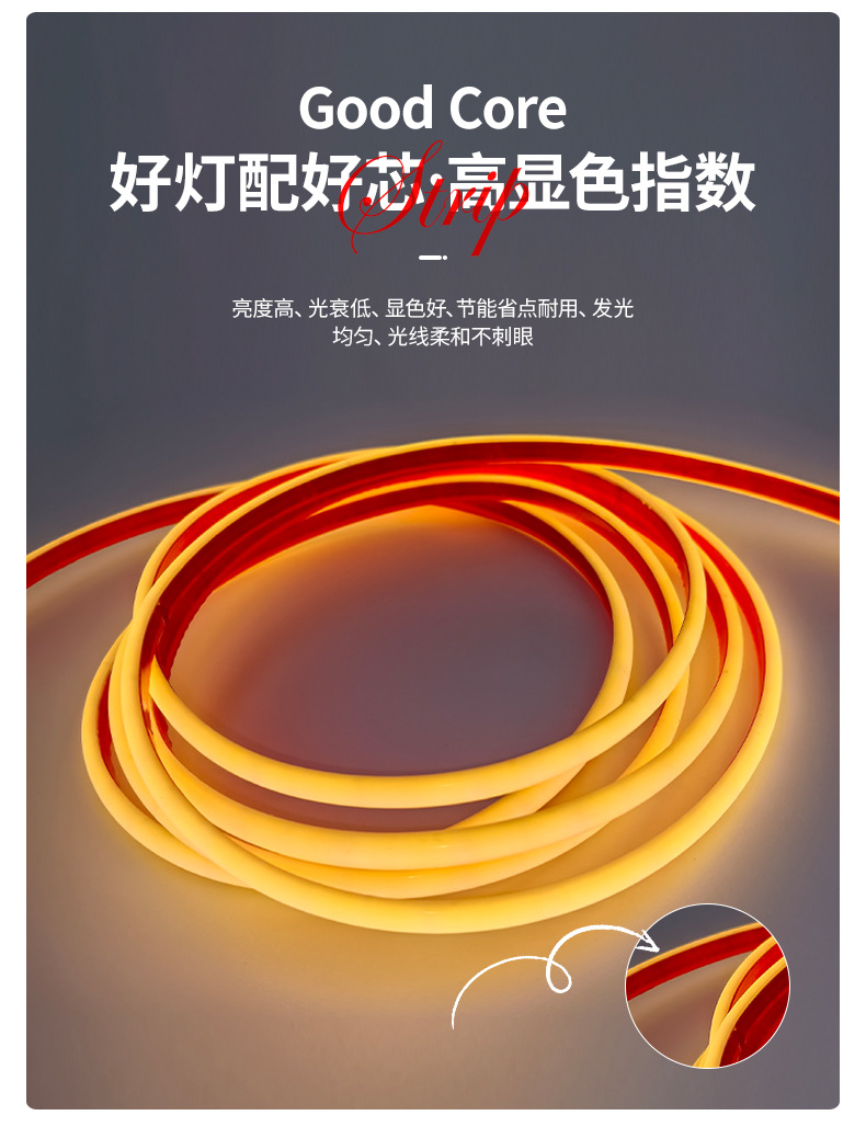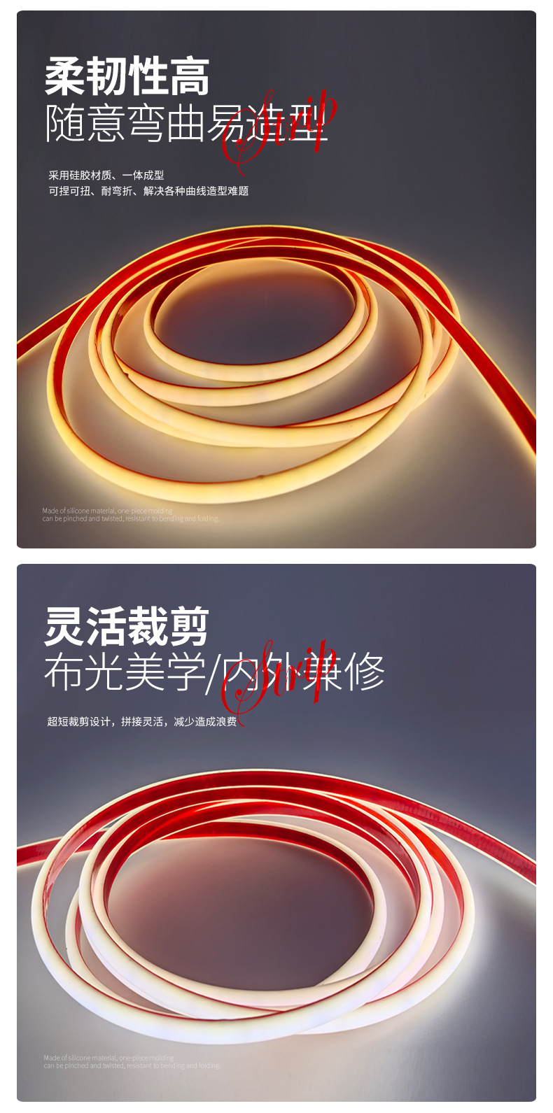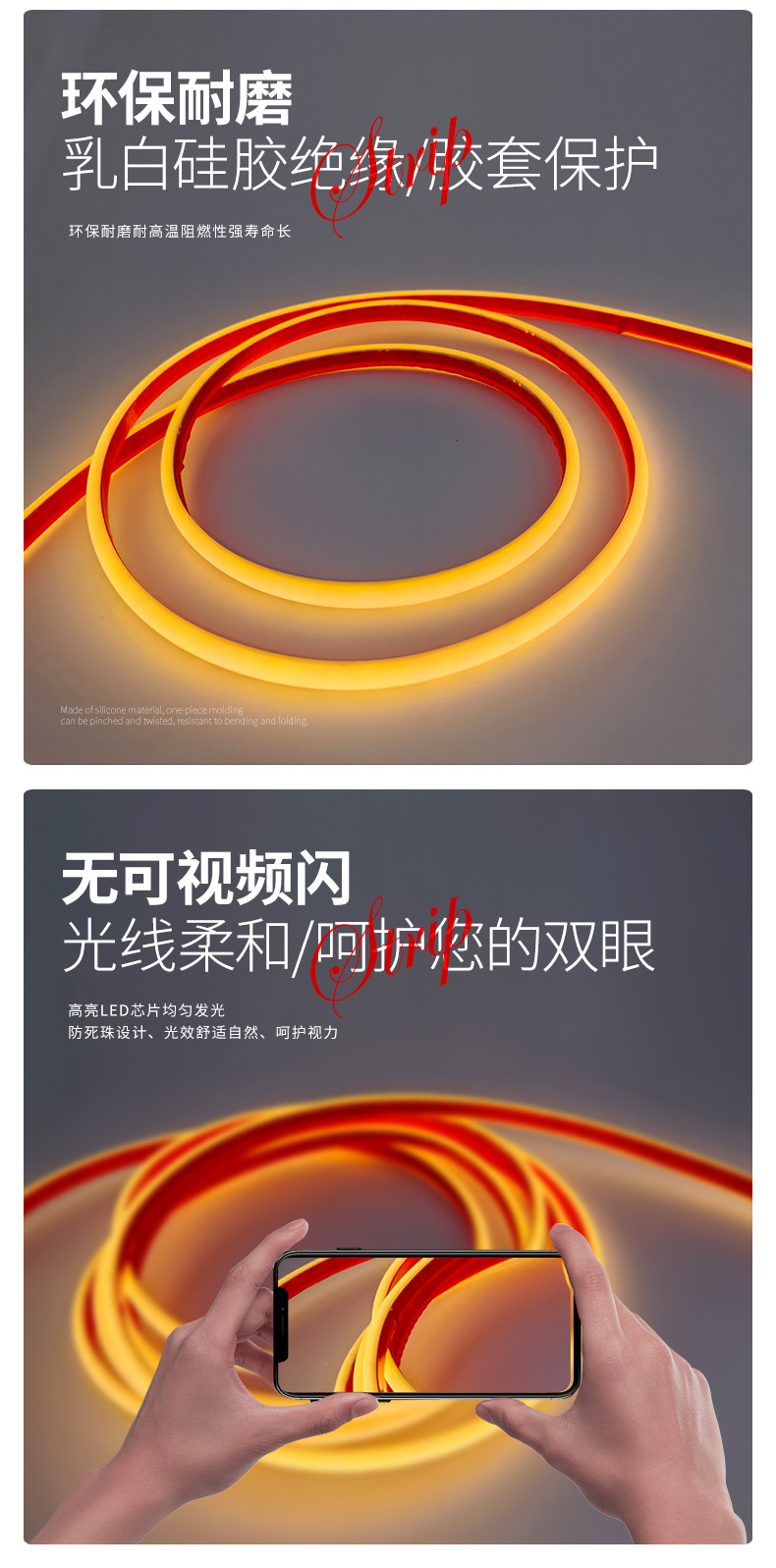 cob硅胶led灯带24V防水灯条游泳池汽车电视氛围7mm宽灯条
