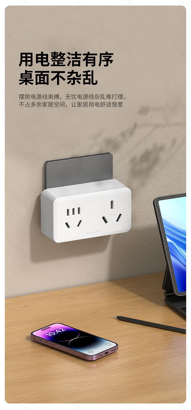 扩展插头插座转换器空调热水器三孔16A无线插排三五孔插位带开关