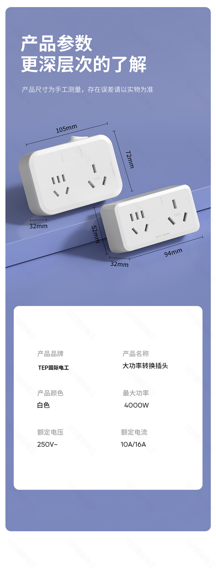 规格型号 10A转(10A五孔+16A三孔),16A转(10A五孔+16A三孔),10A转(10A五孔+16A三孔)带开关,16A转(10A五孔+16A三孔)带开关