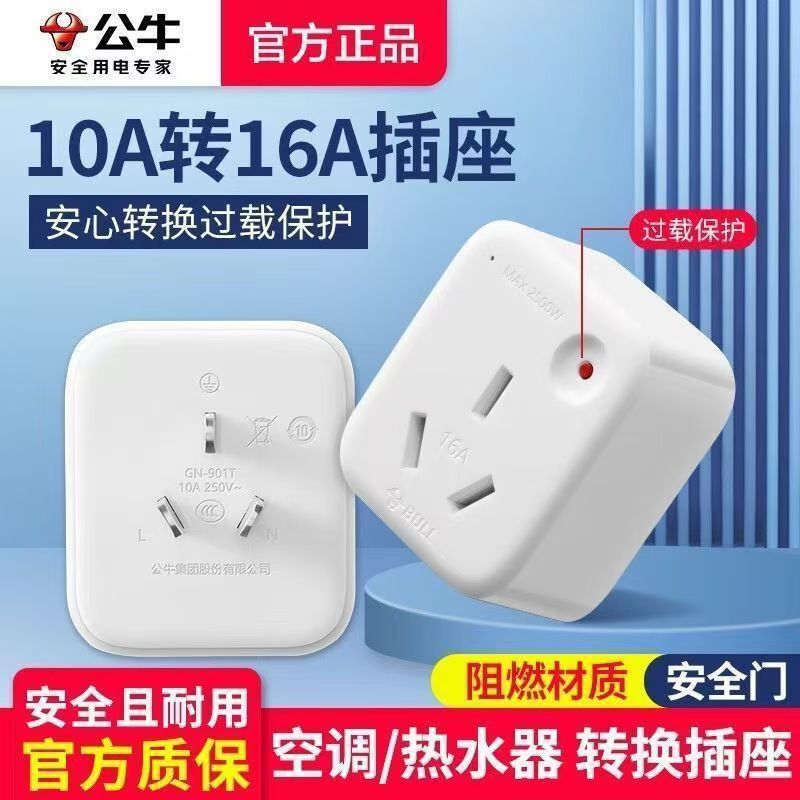 公牛大功率插座转换器空调热水器10A转16A插头过载保护插线板901T