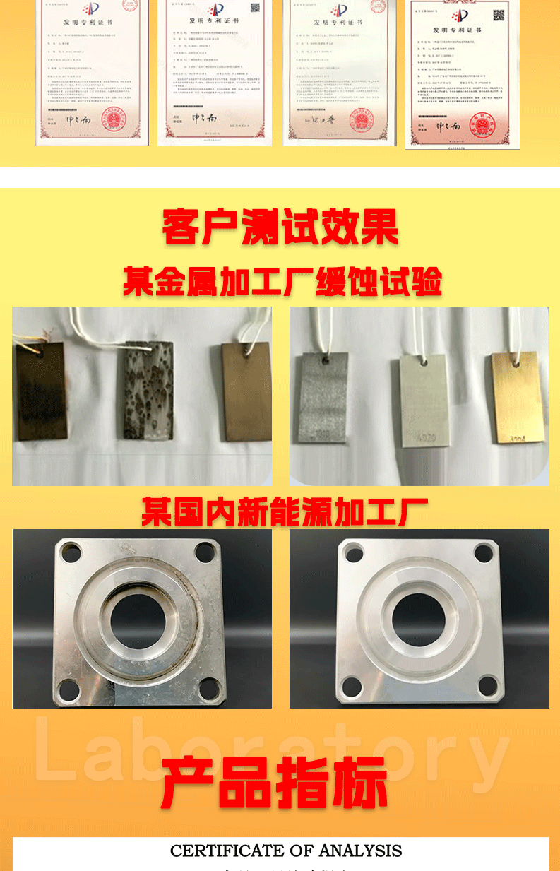 1、使用常见硅类缓蚀剂,出现残留白色硅斑、发花式白膜、白膜干裂、白膜粉化现象,可使用本品解决诸类问题