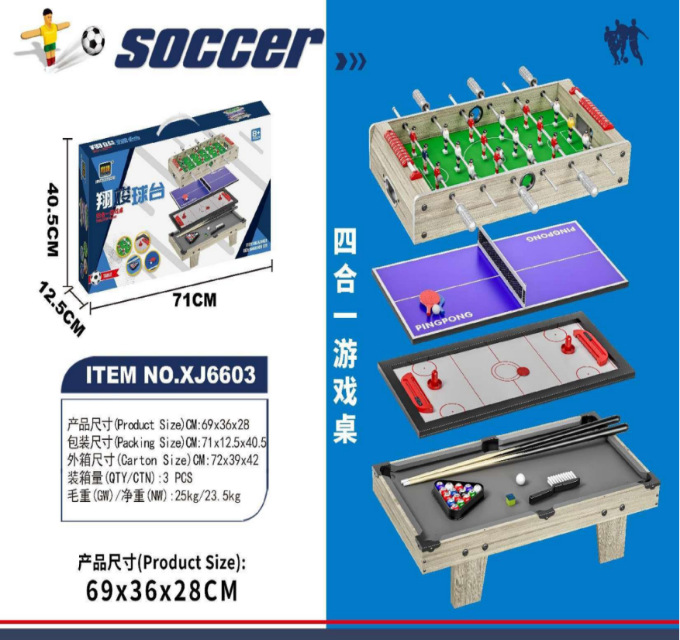 子供四合一ゲームテーブルデスクトップ対戦ビリヤード卓球バドミントンサッカー趣味親子インタラクティブ玩具
