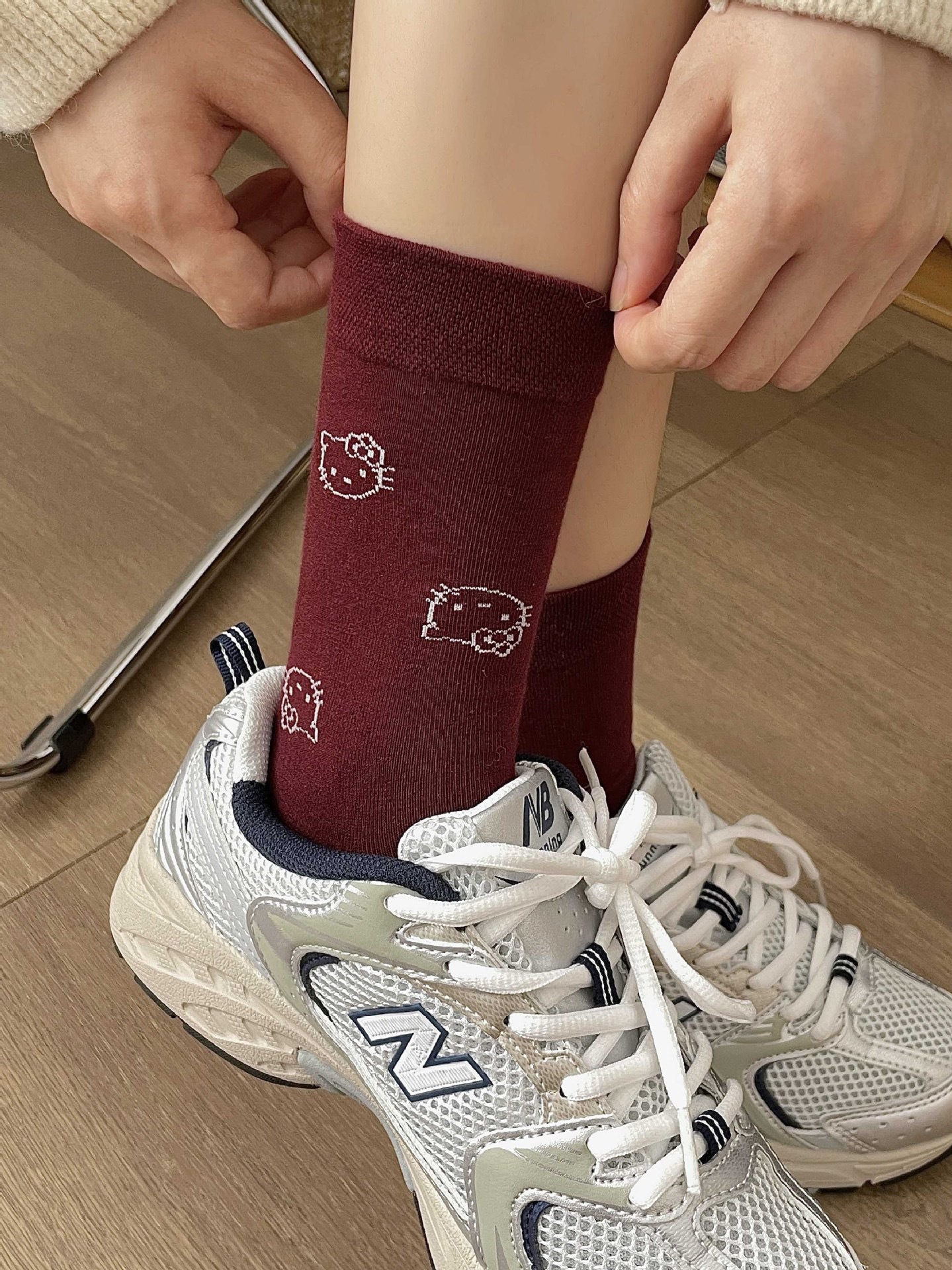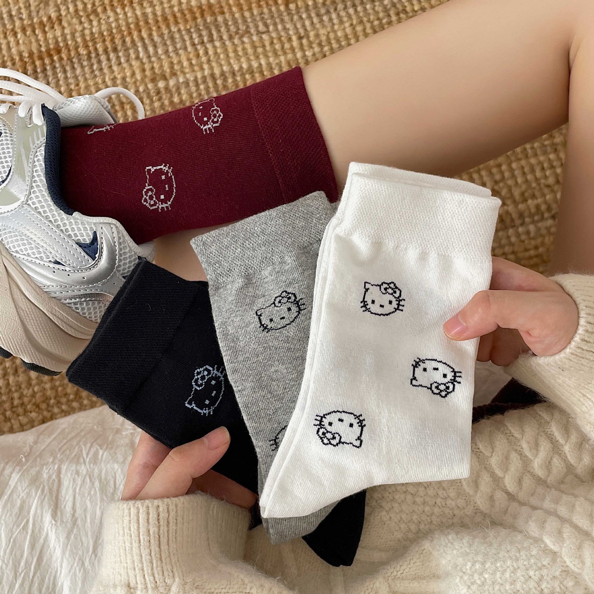 Kitty猫靴下女韓国安可拉紅中筒靴下insネットレッド秋冬新作漫画学院風女靴下