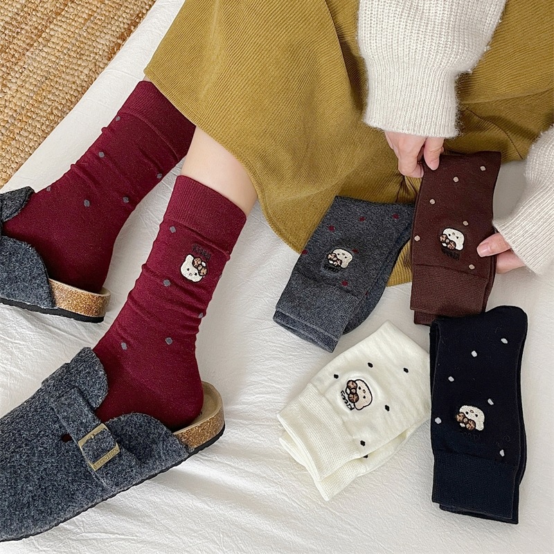 秋冬加厚保暖卡通动物羊毛袜子女可爱小狗中筒袜日系灰色堆堆袜