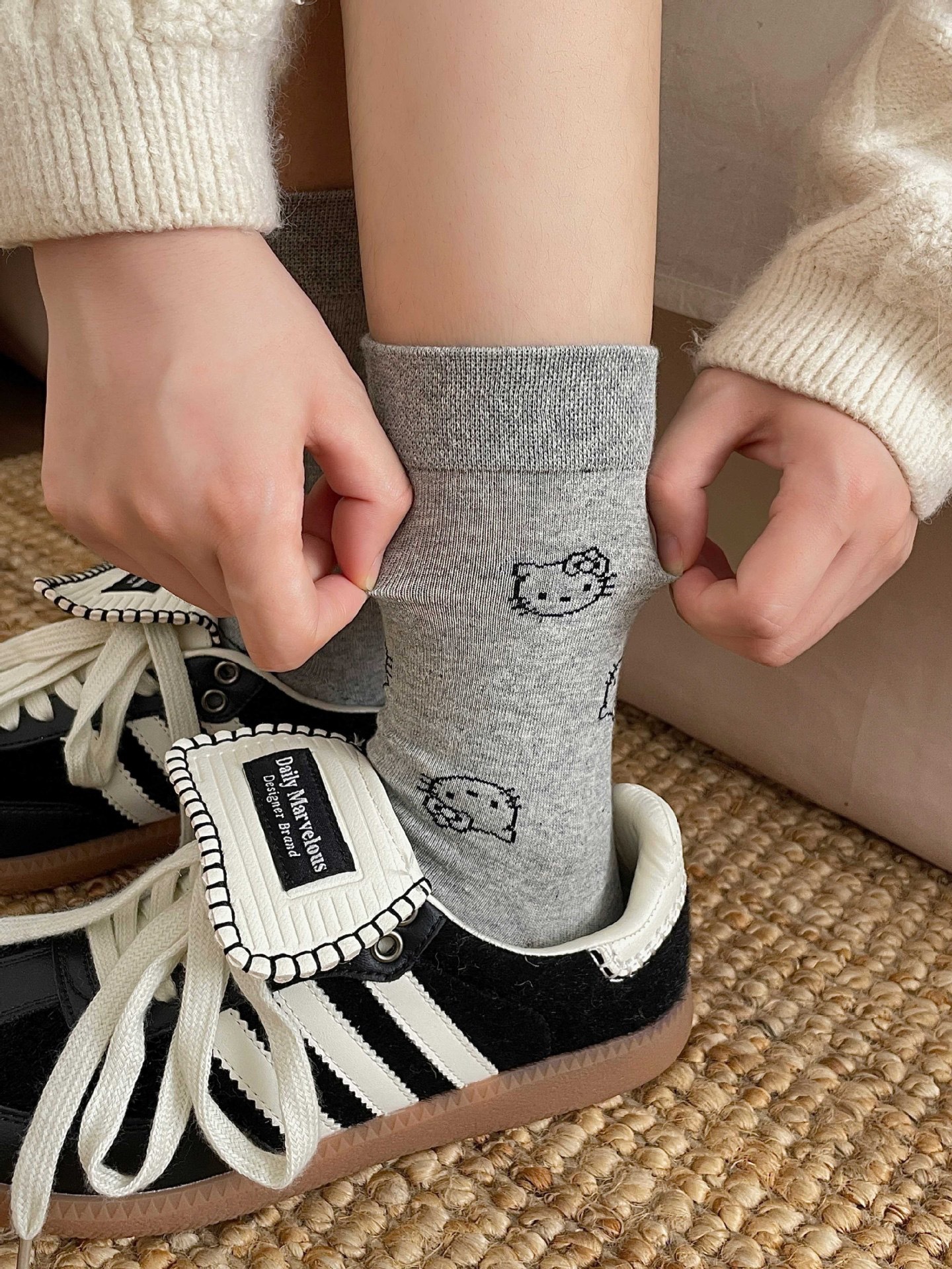 春と秋の高颜値の子猫のプリントの外に女性の靴下を着ます。