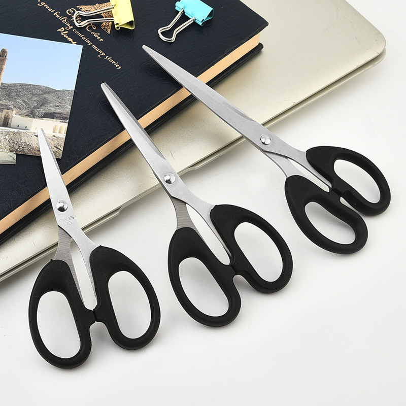 工厂直发插卡包装黑刃工艺不锈钢防锈办公家用剪刀ABS舒适手柄