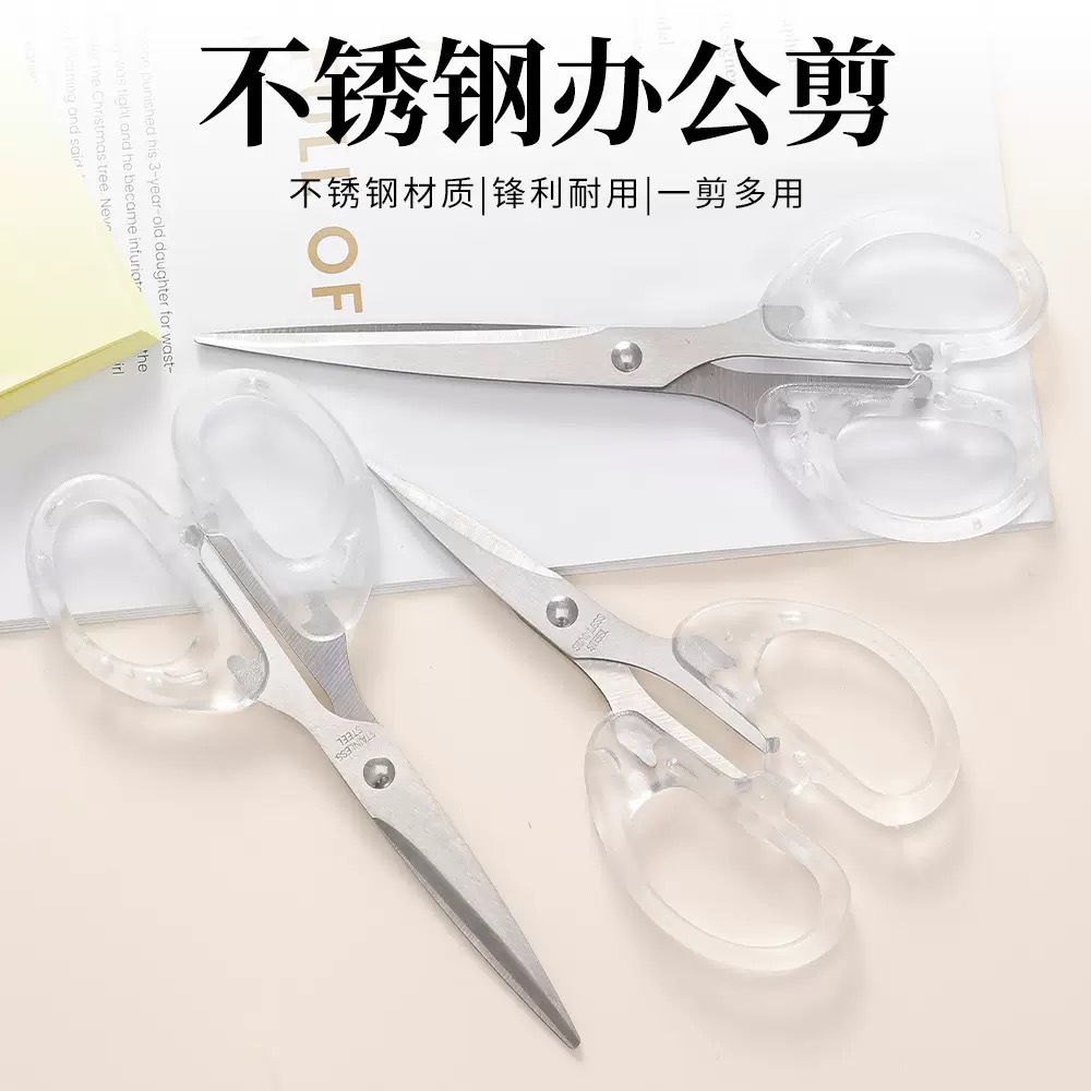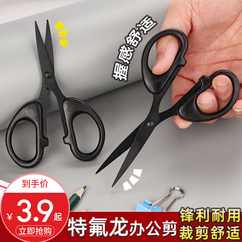 不锈钢办公剪特氟龙防锈防粘剪胶纸剪布料窗花做手工透明剪刀发黑