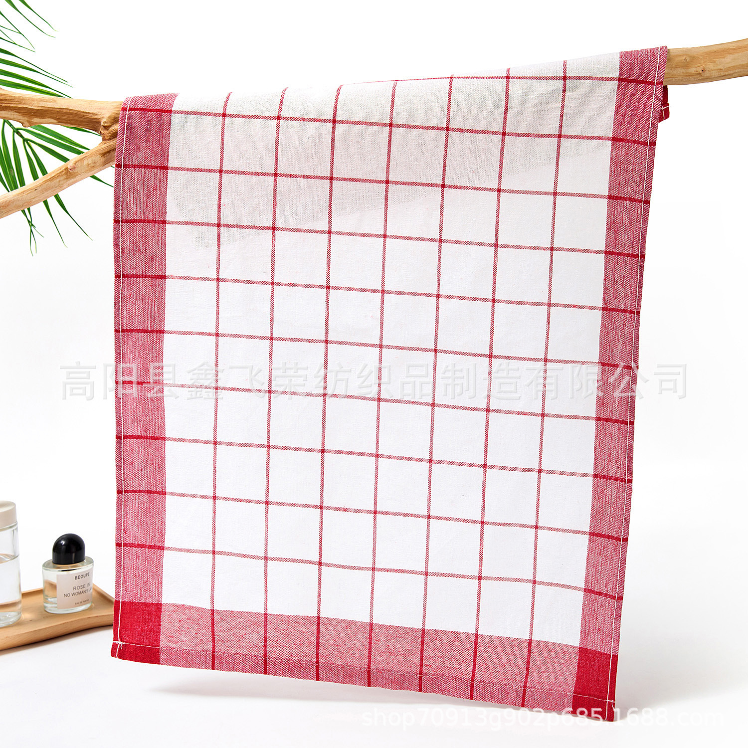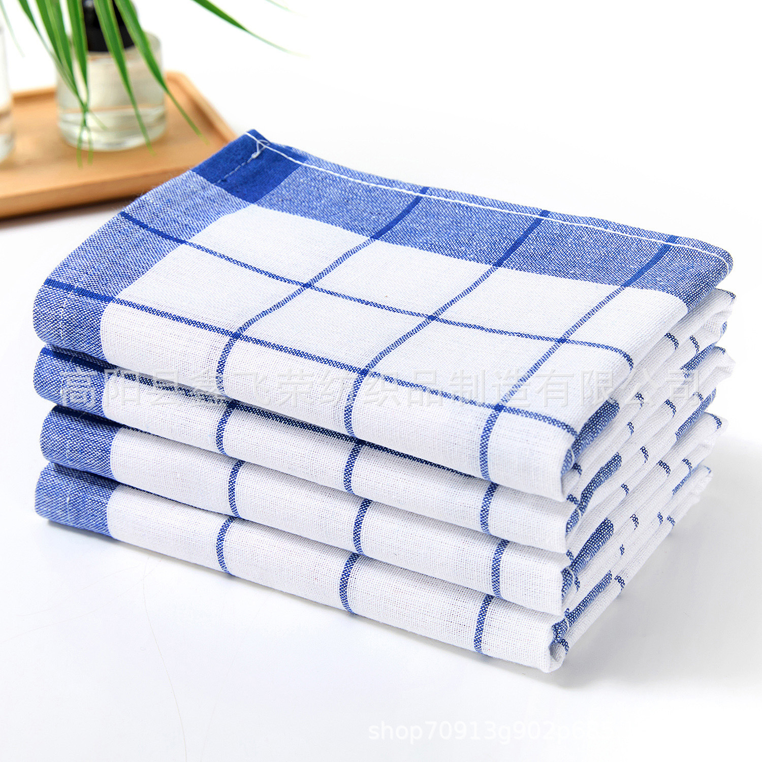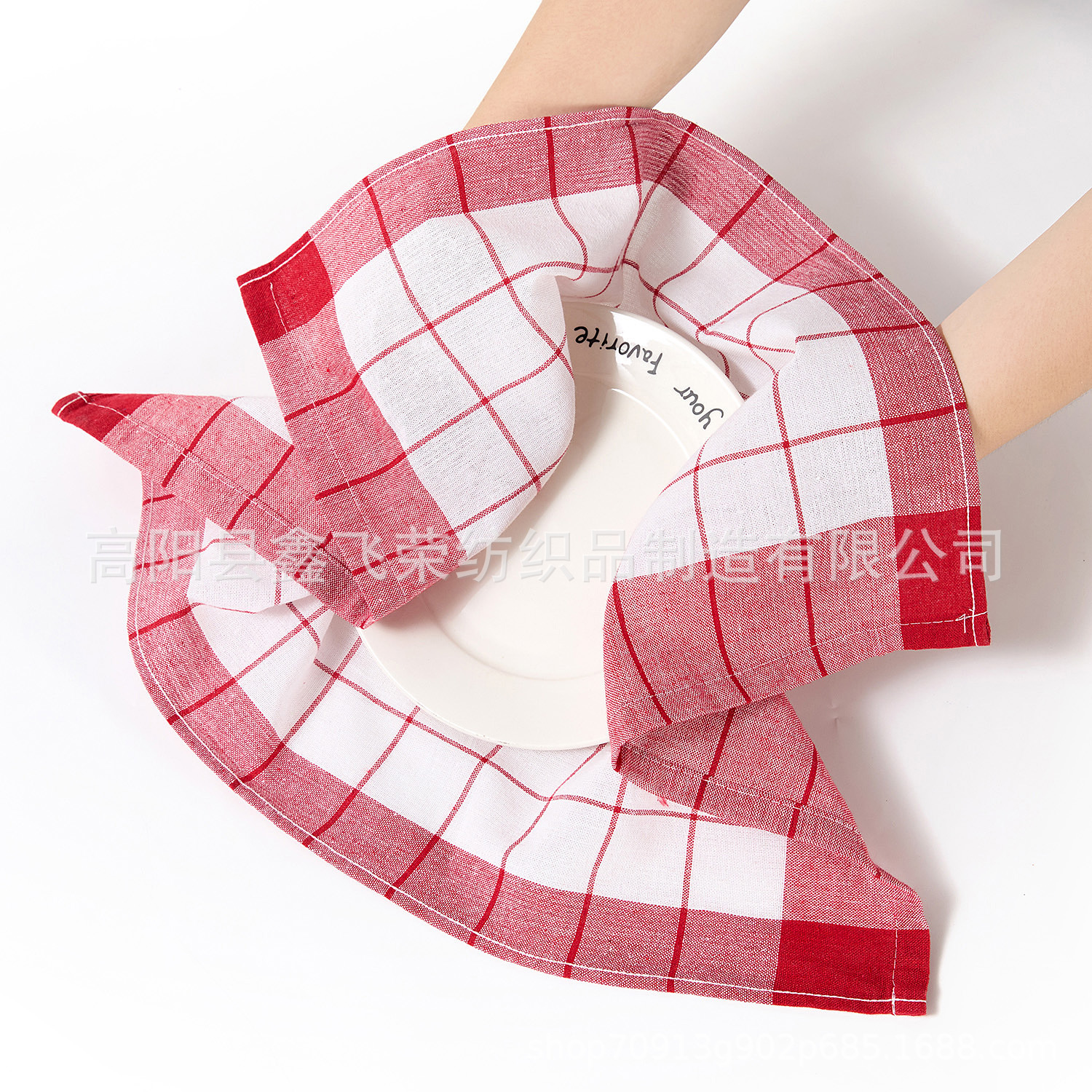 ポリエステル綿色織キッチンタオル皿洗いタオル家庭用吸水雑巾シンプルな格子平布茶巾クロスボーダーソース