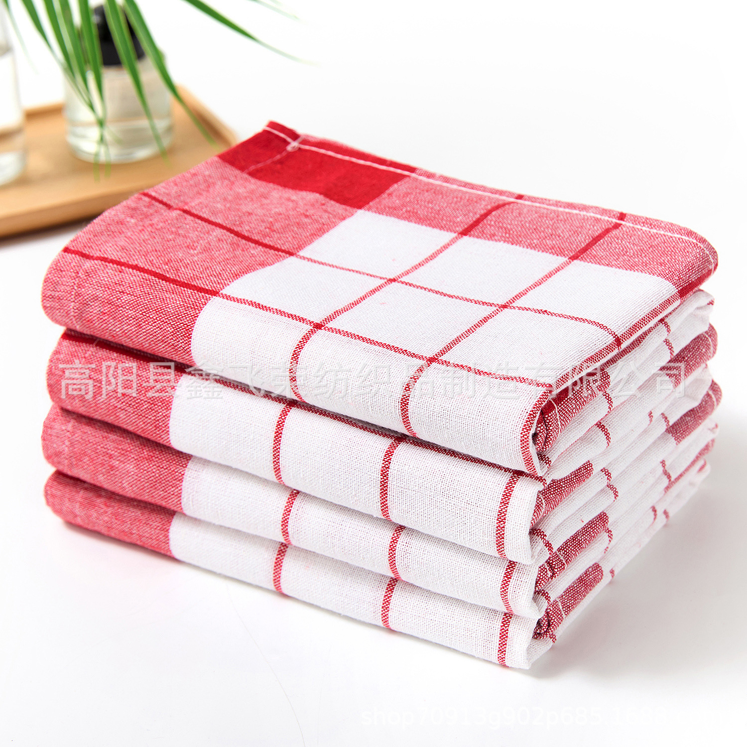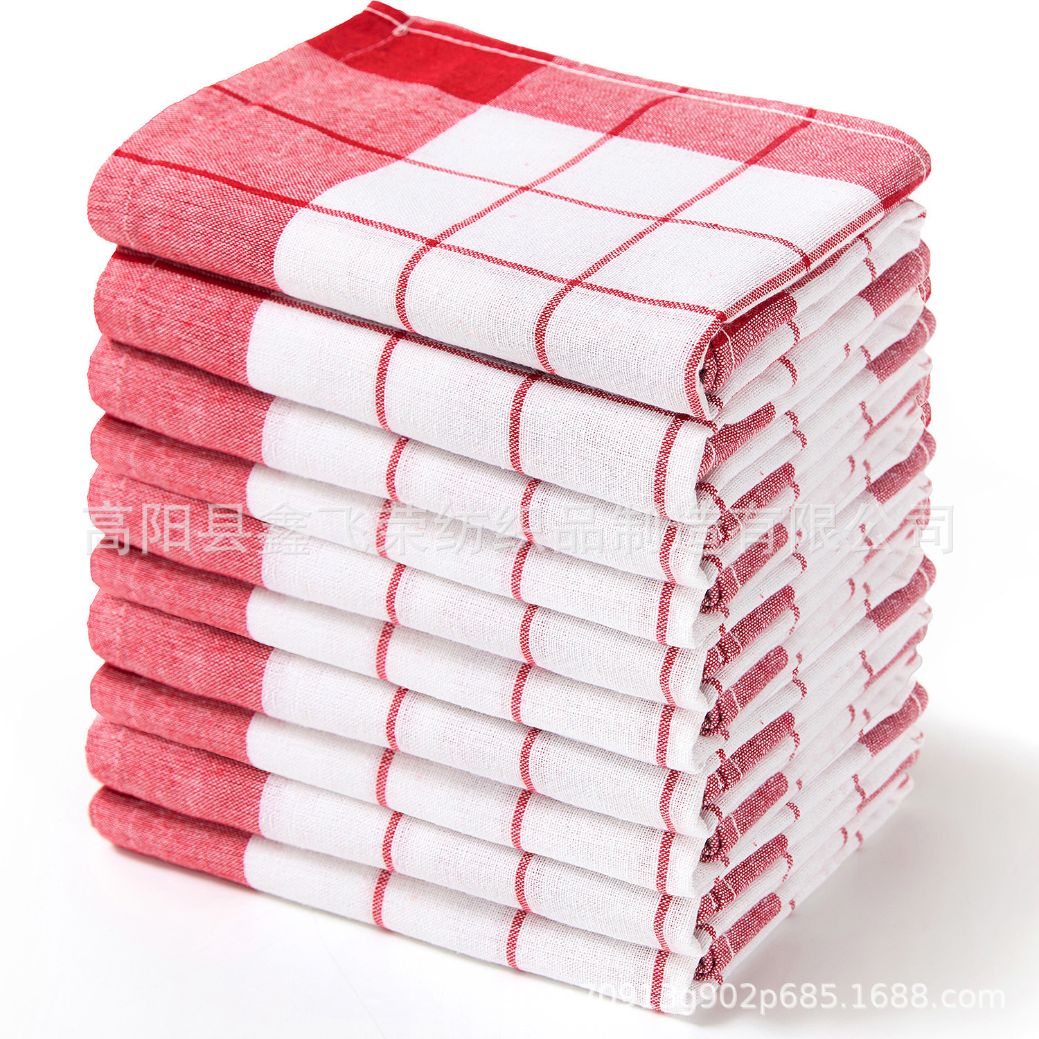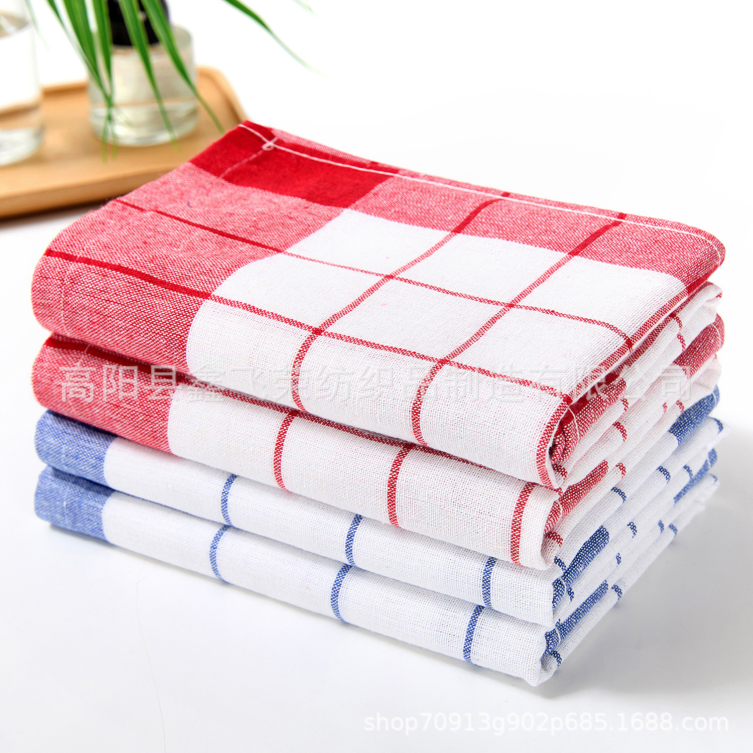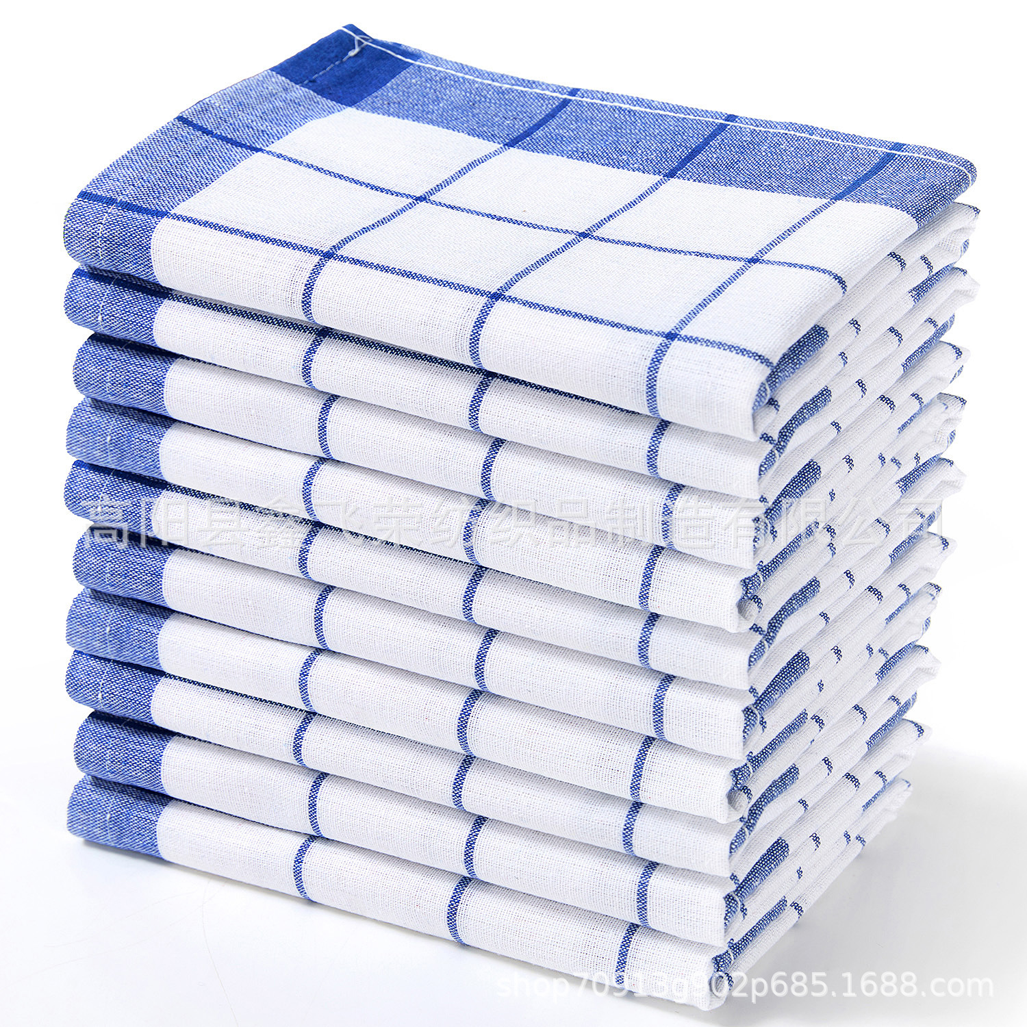 ポリエステル綿色織キッチンタオル皿洗いタオル家庭用吸水雑巾シンプルな格子平布茶巾クロスボーダーソース