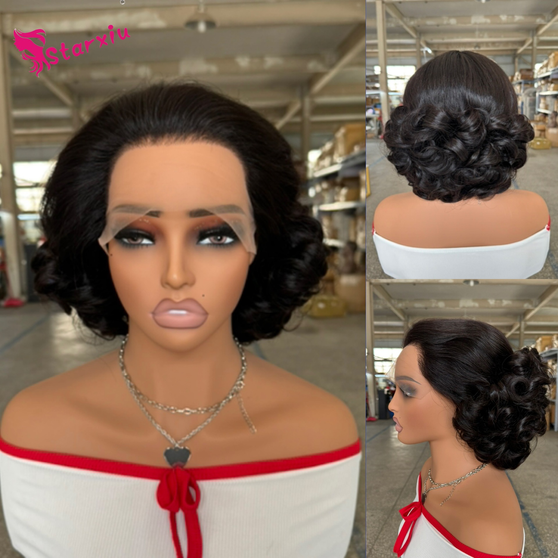 Bouncy 12inches in layereフロントレースかつらアフリカかつらカバーヒューマンhair wig