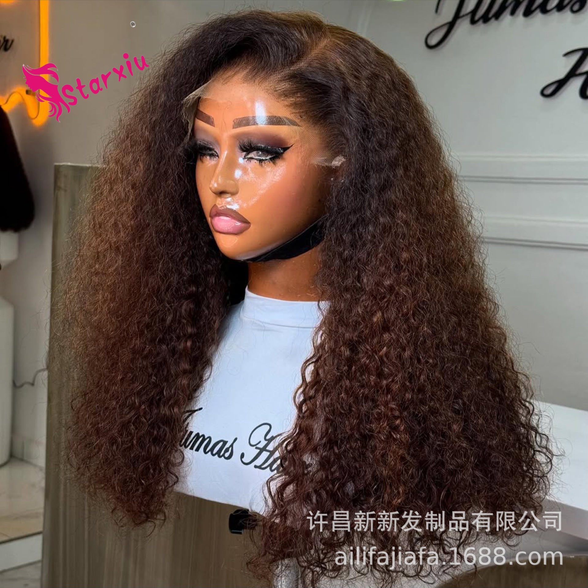 前蕾丝跨境double drawn bouncy curly human hair wigs真发假发