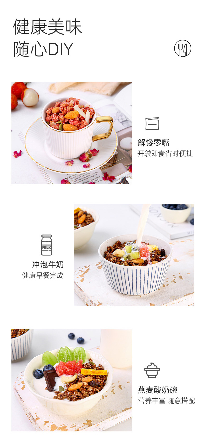 海盐可可烘焙麦片210g水果坚果麦片早餐即食燕麦脆荔枝玫瑰燕麦片