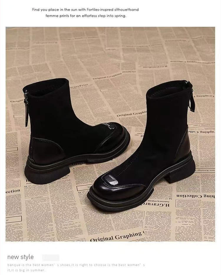 2025新款早秋季超火网红爆款法式时尚厚底粗跟舒适瘦瘦马丁短靴女