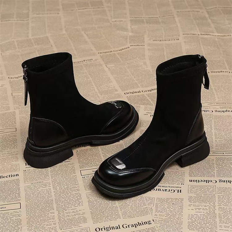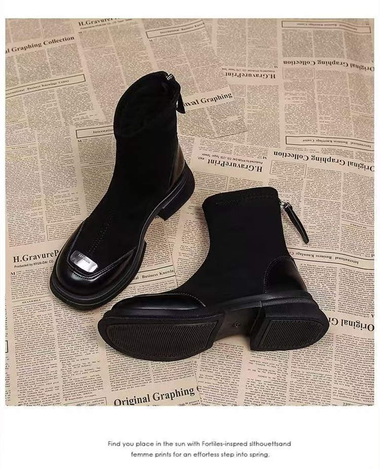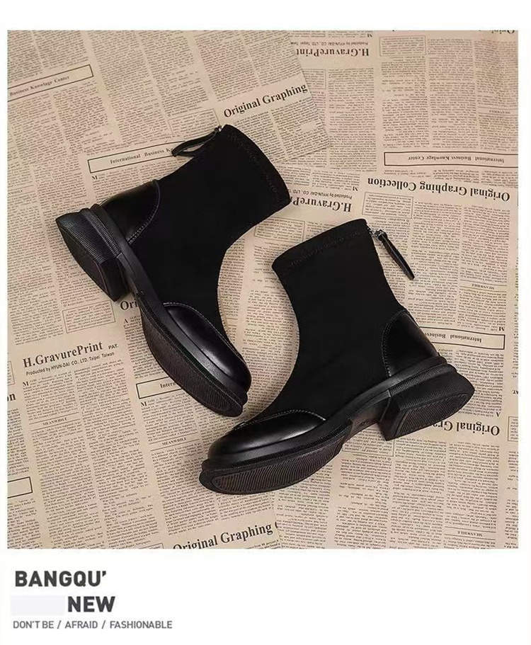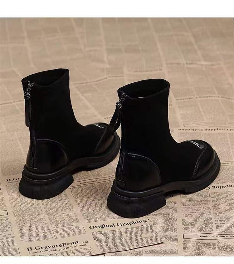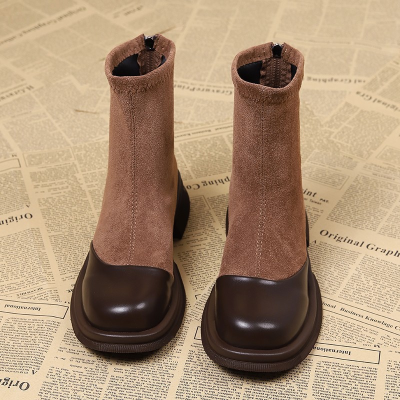レトロ英国風万能スリムブーツブラウンソックスブーツ2024秋冬おしゃれショートブーツ人気の小さなアンクルブーツ