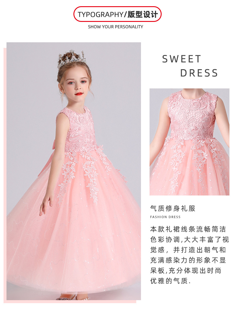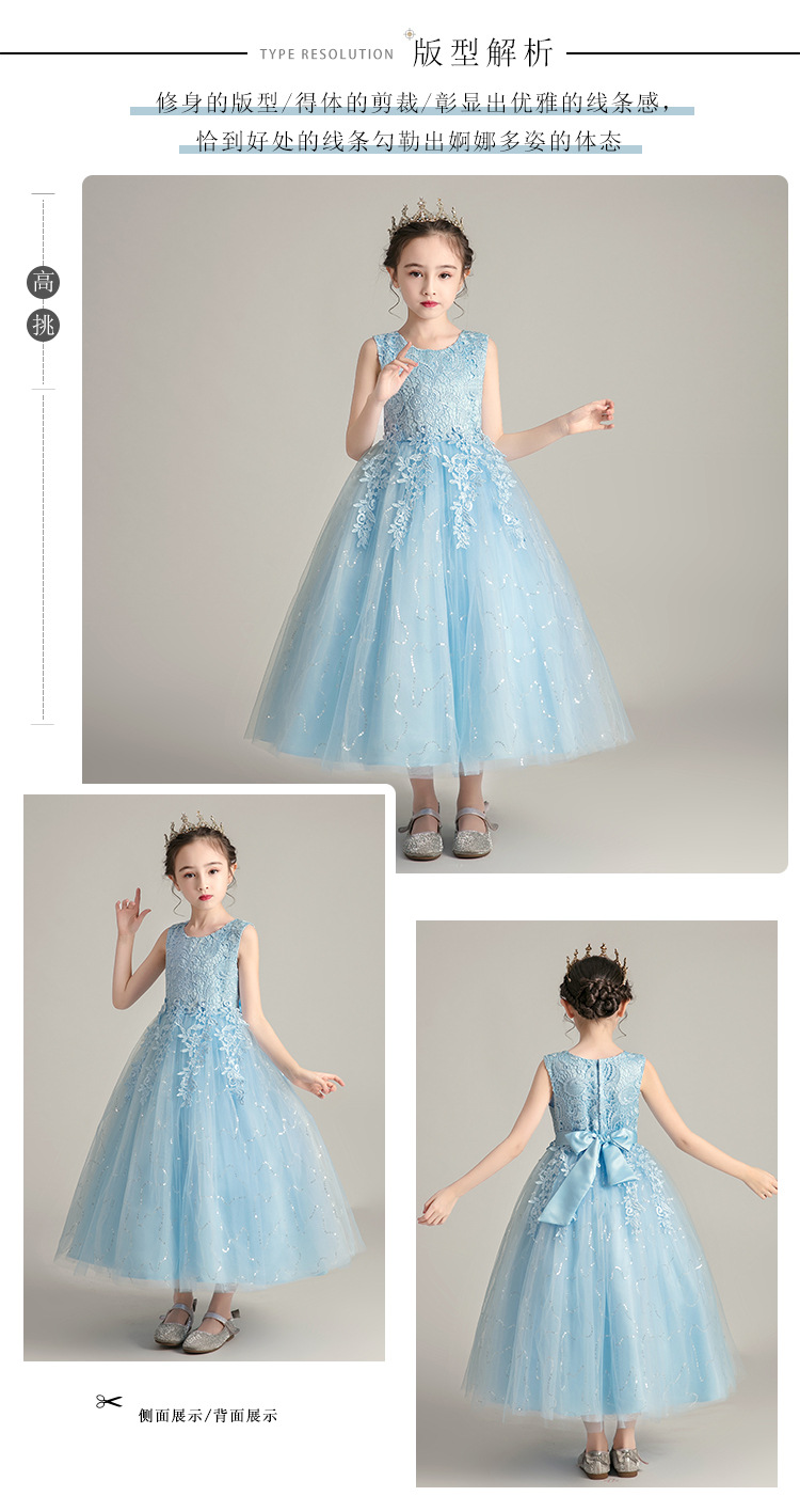 儿童公主裙蓬蓬婚纱亮片晚礼服女孩生日钢琴演出服装女童连衣裙夏