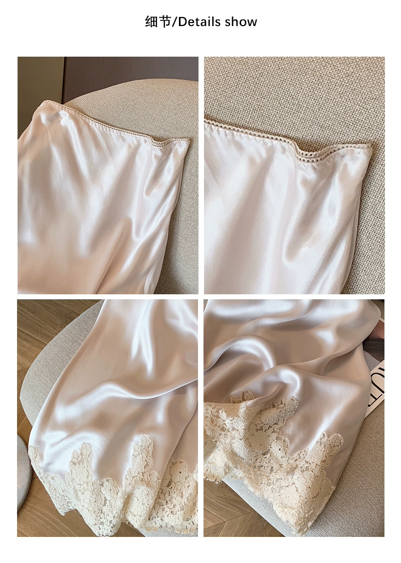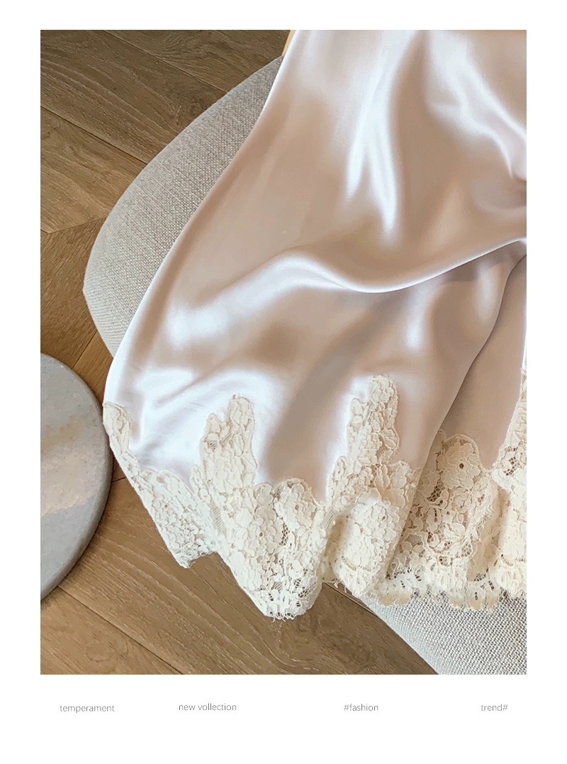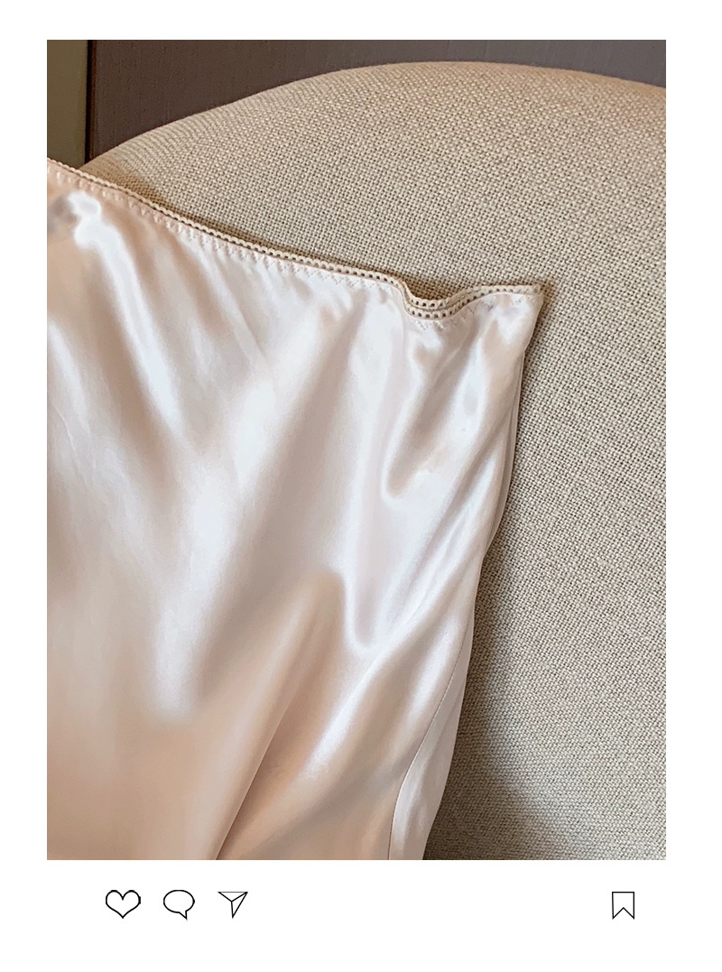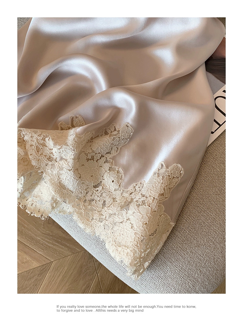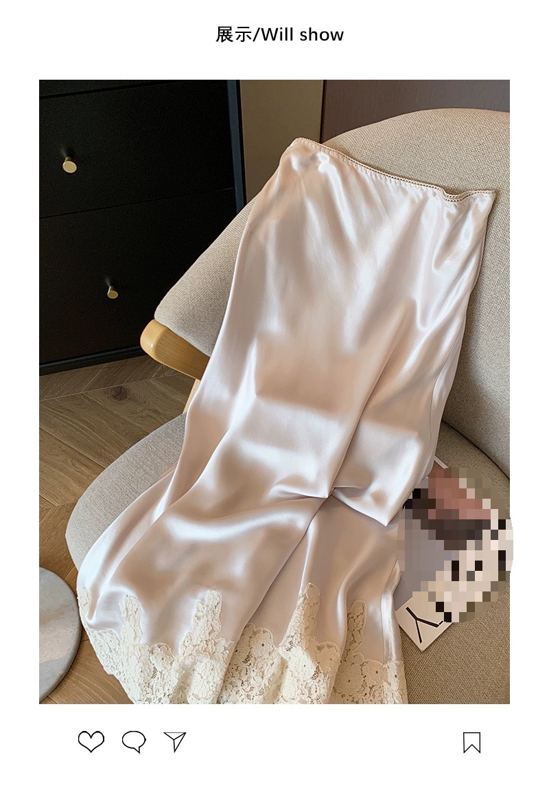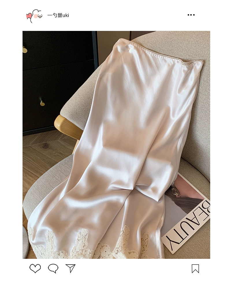 设计感醋酸缎面高腰半身裙女夏季洋气蕾丝拼接中长款鱼尾包臀裙子