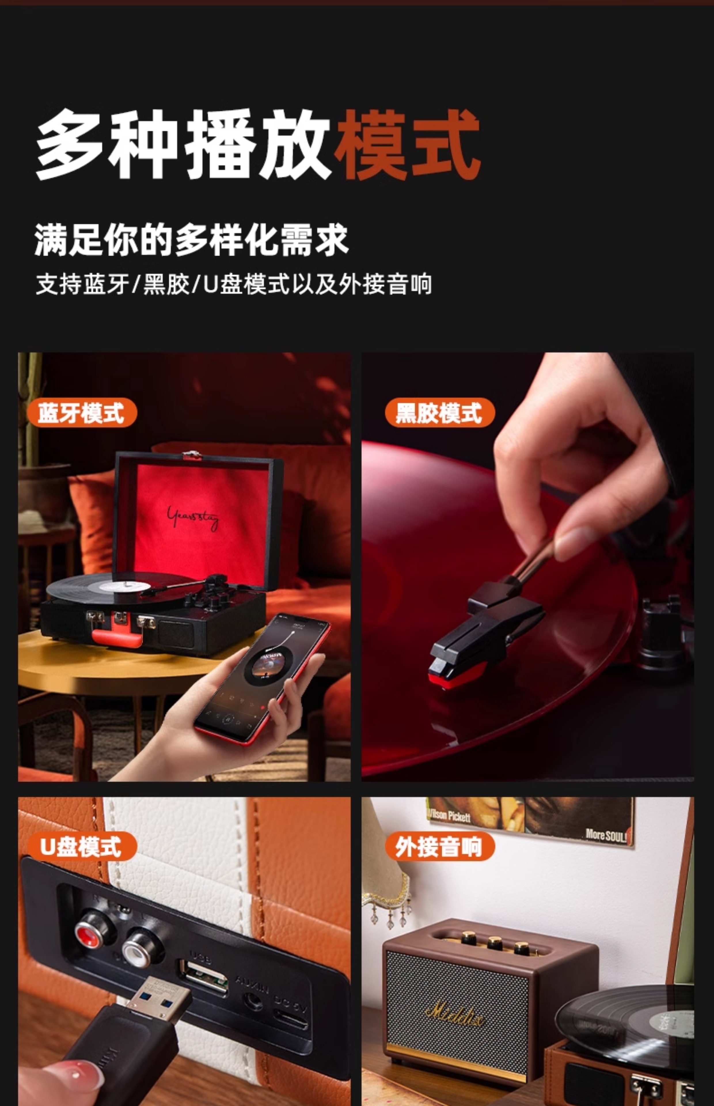 現物クロスボーダー携帯ミニ蓄音機デスクトップ黒ゴムレコード機携帯無線bluetoothオーディオレコード機