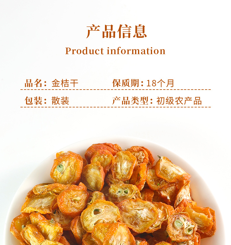 包装规格 金桔片罐装(100g/罐),金桔片(500g),冻干金桔片(500g)