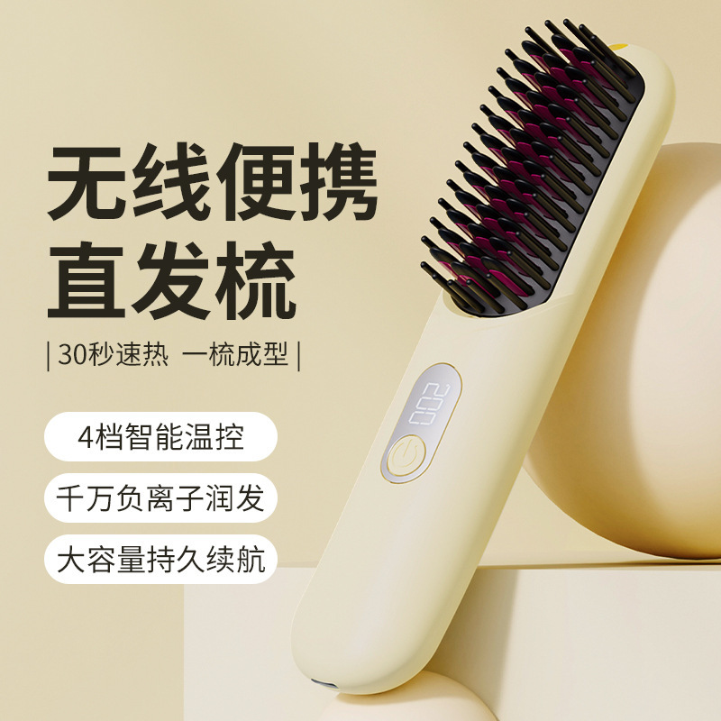 ポータブルワイヤレスヘアストレートコームマイナスイオンカーリングとストレート両用ヘアアイロンショートヘアふわふわ電気加熱コームクロスボーダー