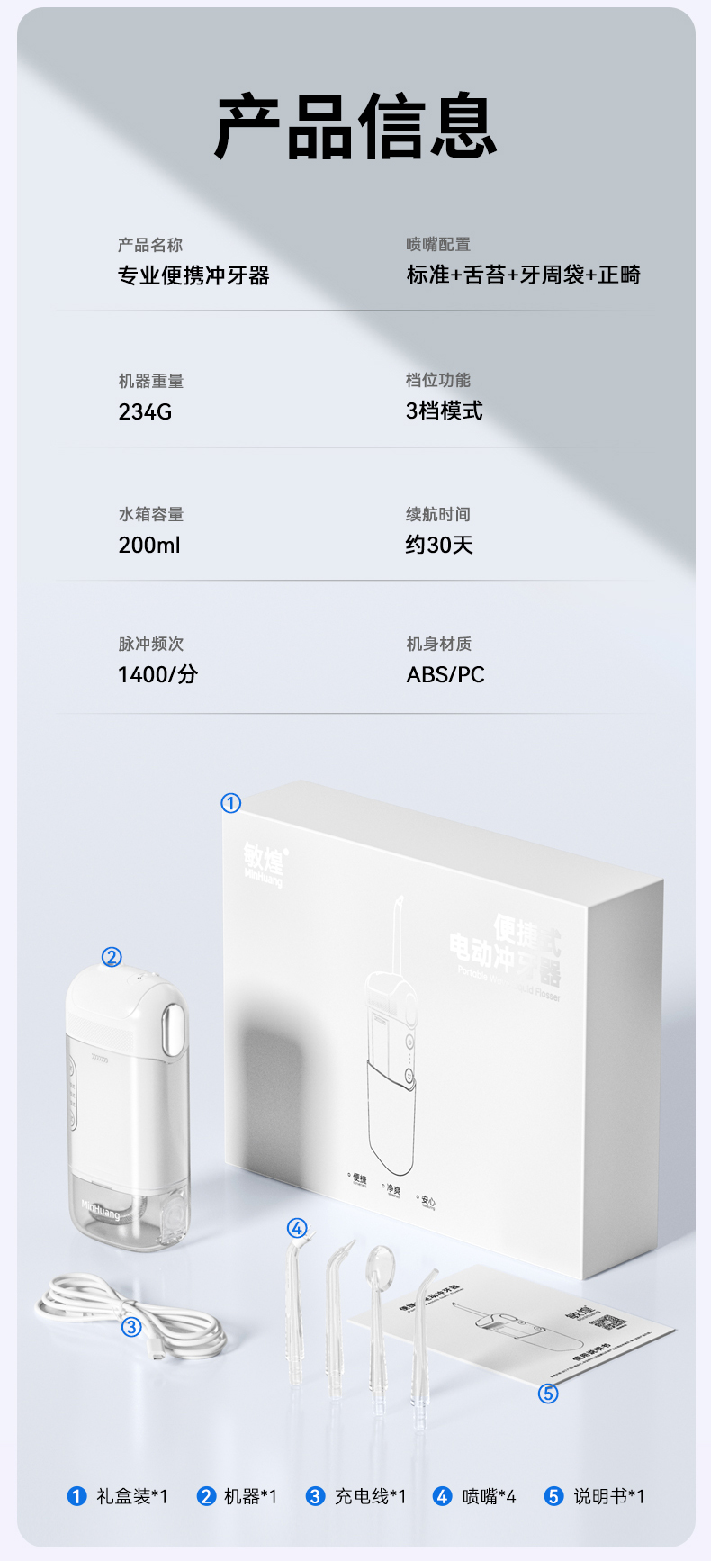 跨境冲牙器便携式小巧出差微型电动脉冲洗牙器家用清洁器洗牙神器