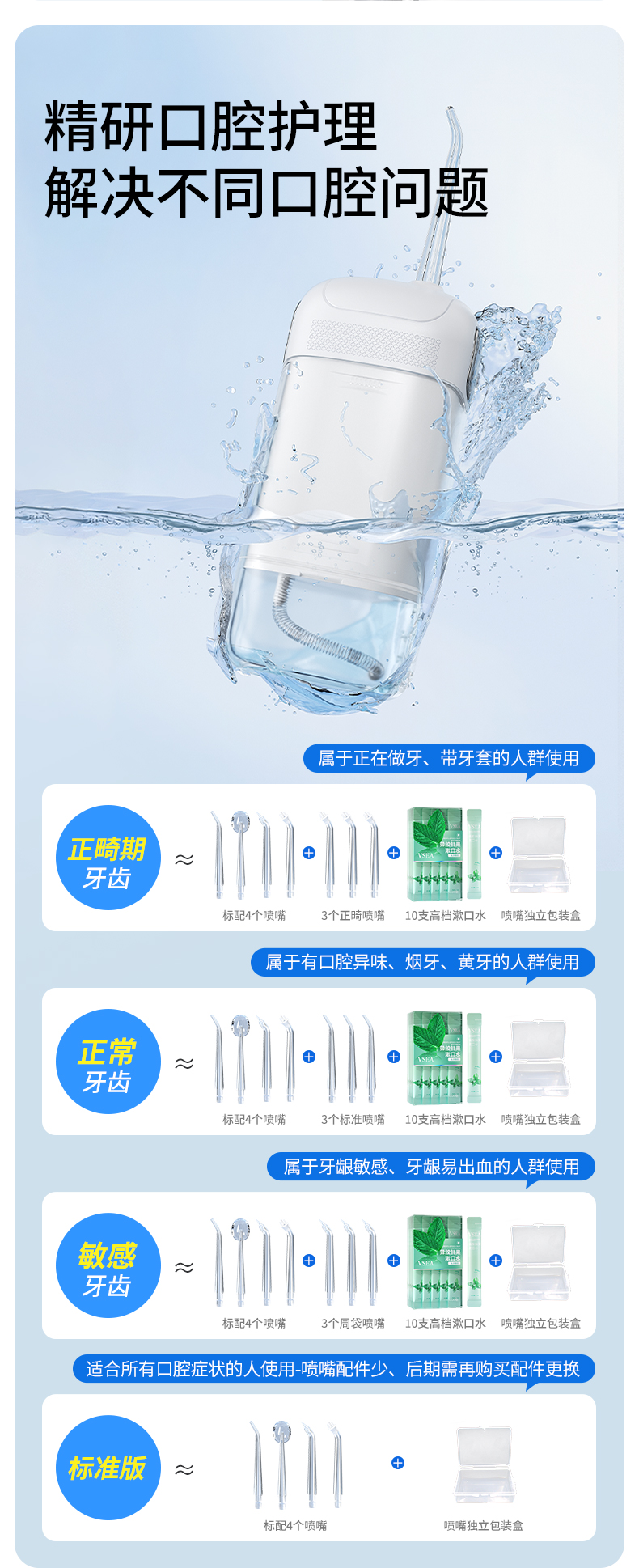 颜色 6886冲牙器【轻奢白三档控频+4喷嘴】,6691冲牙器【4支喷嘴+水箱】,7008冲牙器【8支喷嘴-280mL水箱】,S57彩盒4头(磨砂白),S57彩盒4头(玫瑰粉)