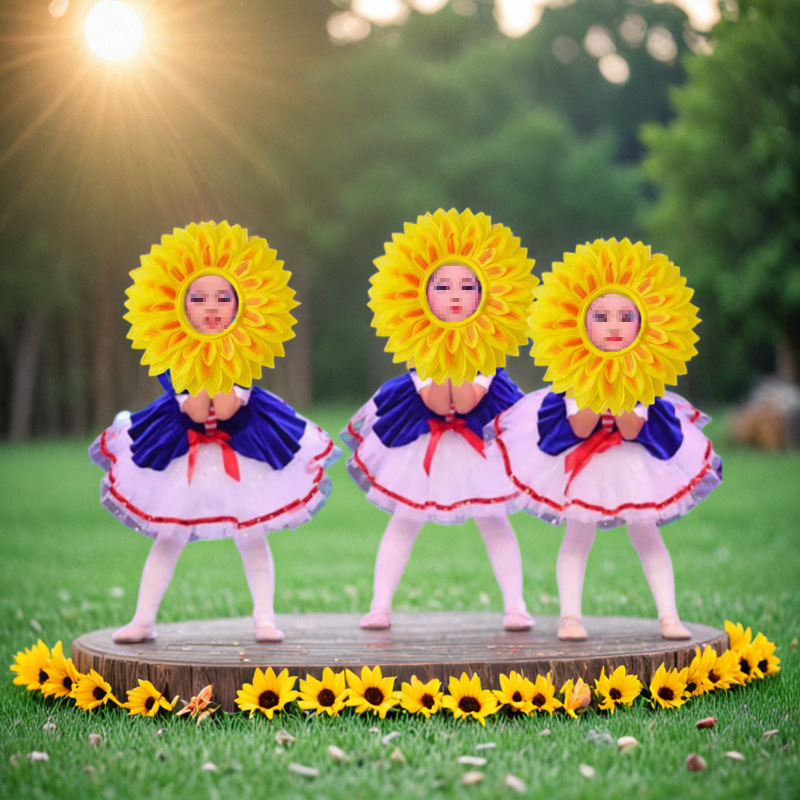 ひまわりの頭カバーの子供のダンスの道具の太陽の花は顔のヒマワリの運動会の入場のお笑いの開会式の手の花を現します。