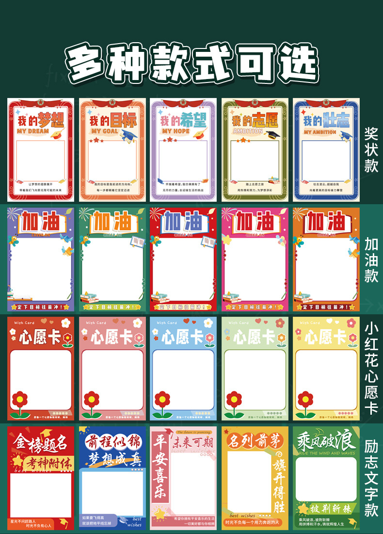 尺寸 加油【HK502】50张/包 送72枚贴纸,加油【HK502】50张/包+原木夹子麻绳1套,心愿【HK503】50张/包+原木夹子麻绳1套,我的梦想【HK501】50张/包+原木夹子麻绳1套,励志语录【HK504】50张/包+原木夹子麻绳1套,心愿【HK503】50张/包 送72枚贴纸,我的梦想【HK501】50张/包 送72枚贴纸,励志语录【HK504】50张/包 送72枚贴纸,全套四款【HK501-504】各1包 送288枚贴纸,全套四款【HK501-504】各1包 +原木夹子麻绳 2套