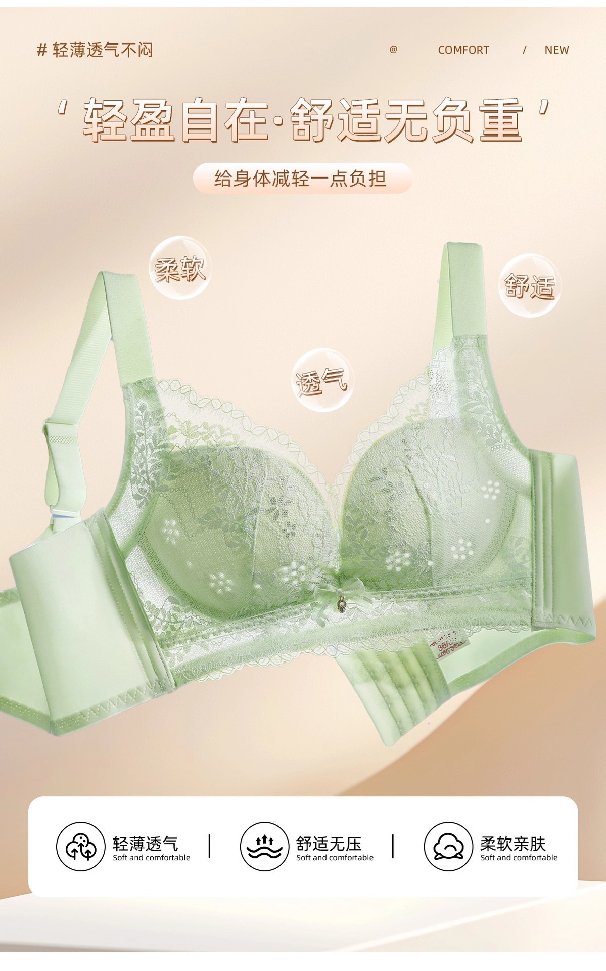 夏季薄款透气内衣女小胸聚拢收副乳防下垂蕾丝洞洞杯调整型文胸罩