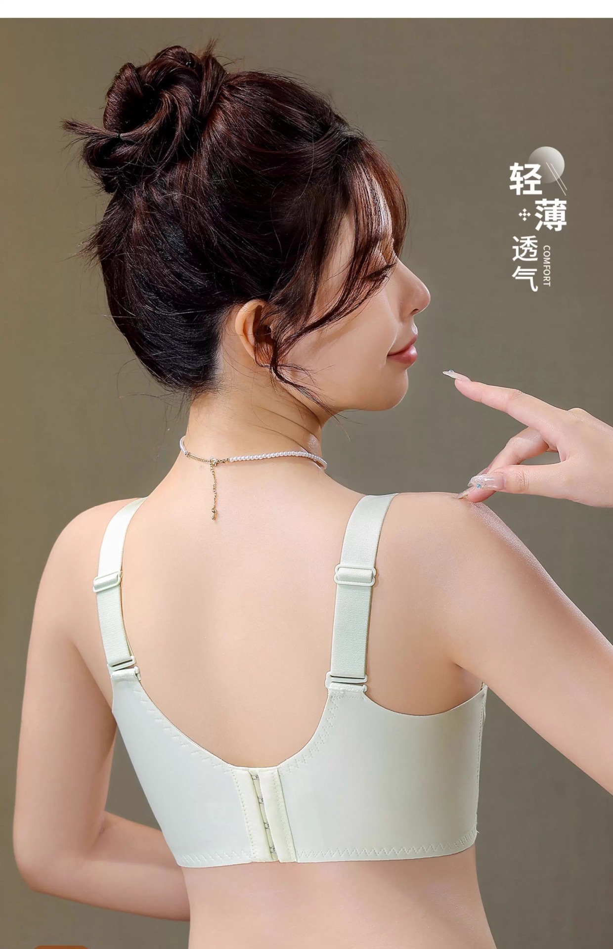 新商品のシルクの卵白の中のブラジャーは副乳を収めて上に支えて調整型の無鋼の輪のブラジャーの快適な下着の女性を集めます。