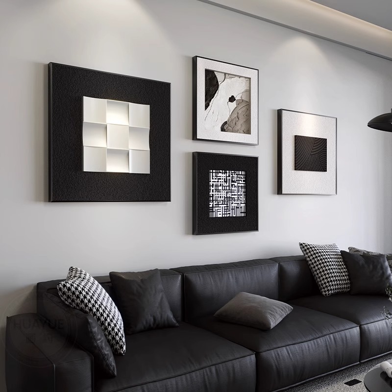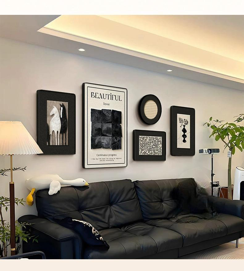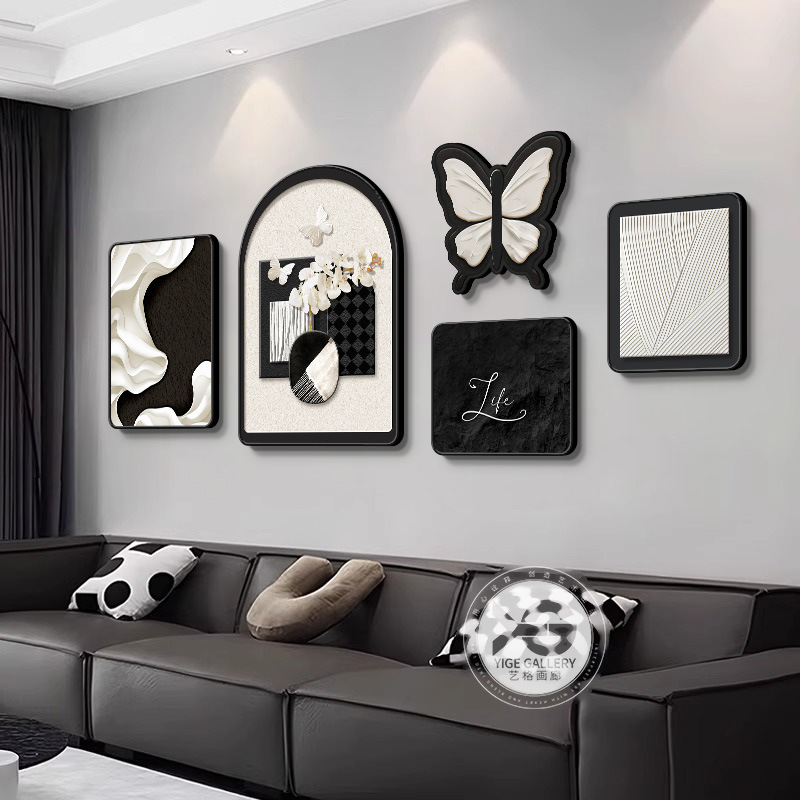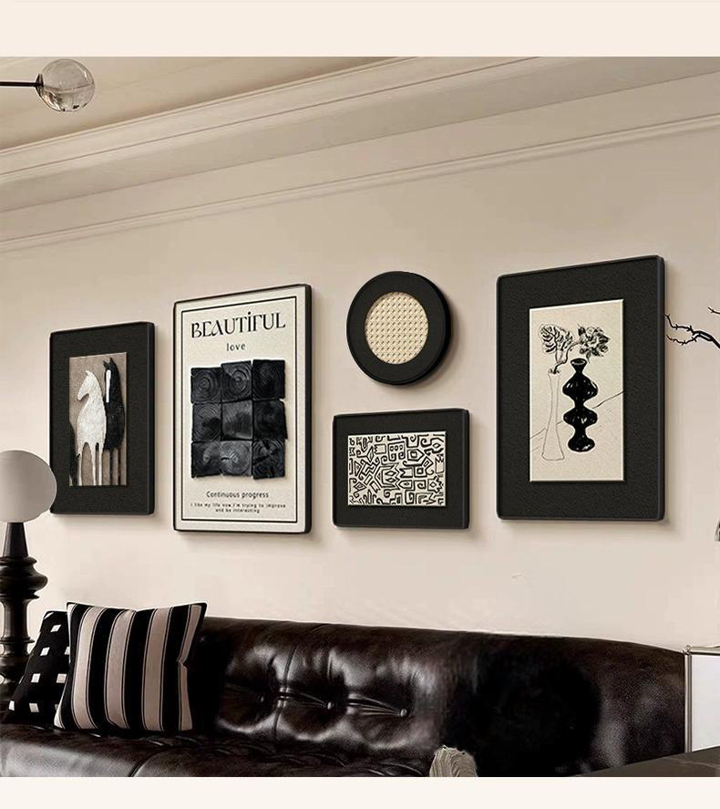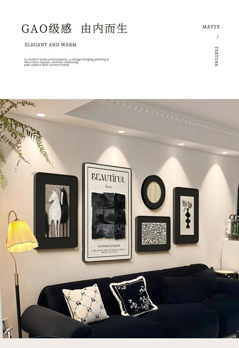 意式极简客厅装饰画法式高级感黑白壁画中古风沙发背景墙组合挂画