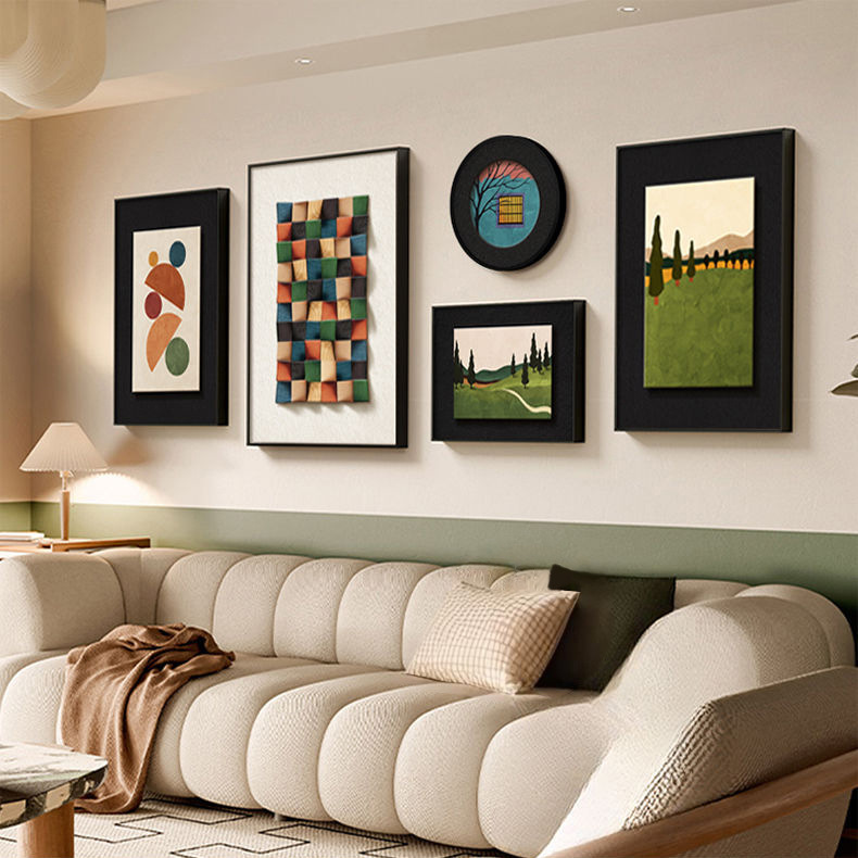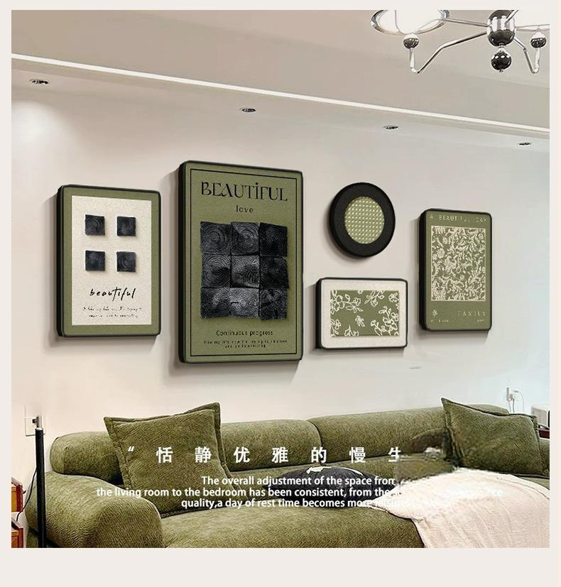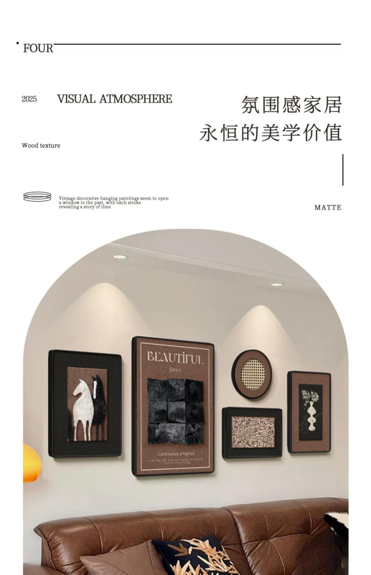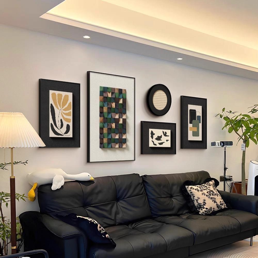 意式极简客厅装饰画中古风高级感沙发背景墙挂画法式抽象组合壁画