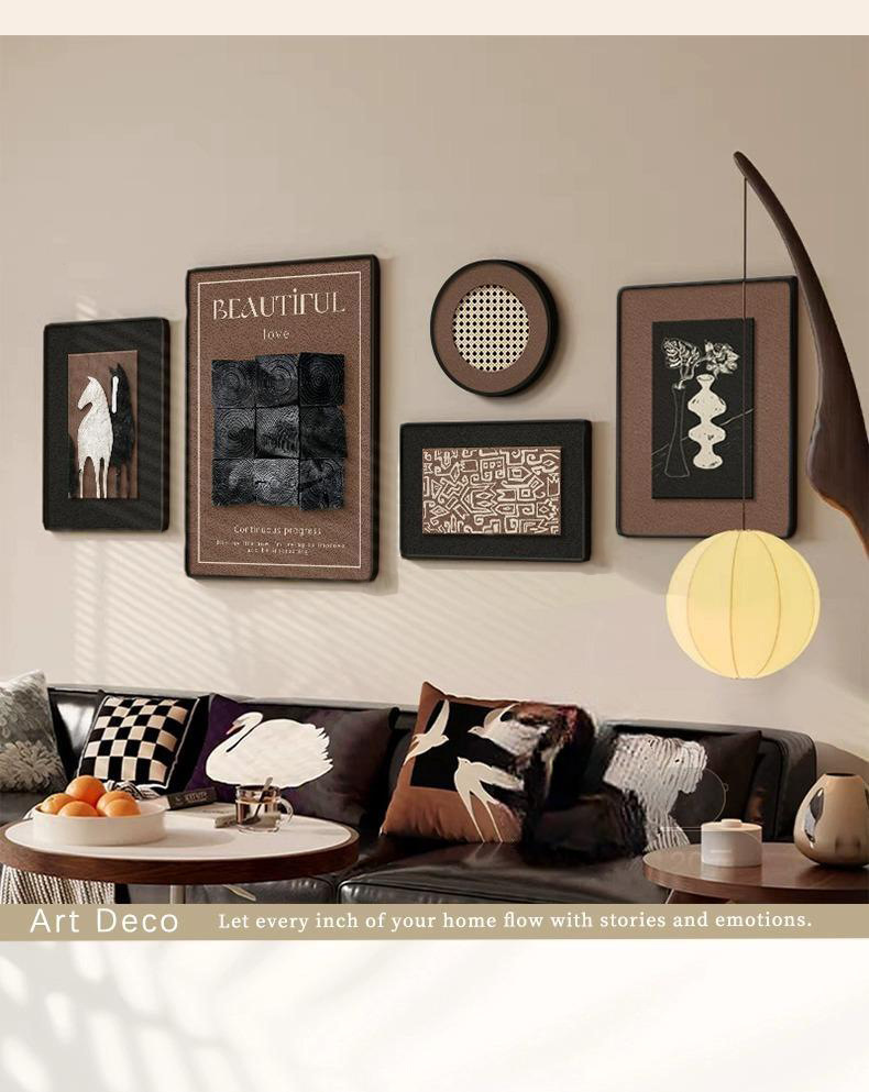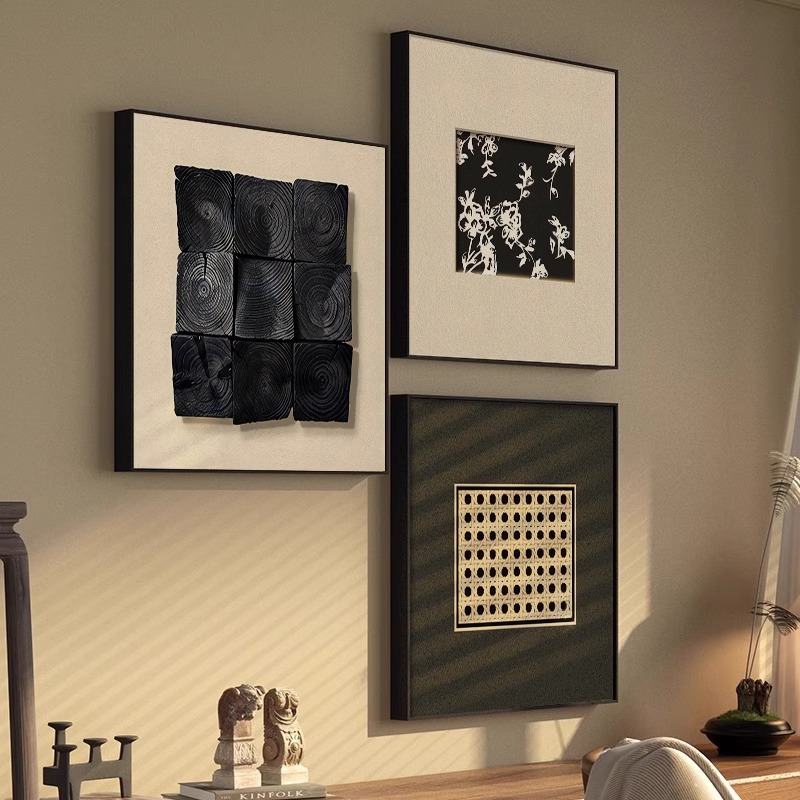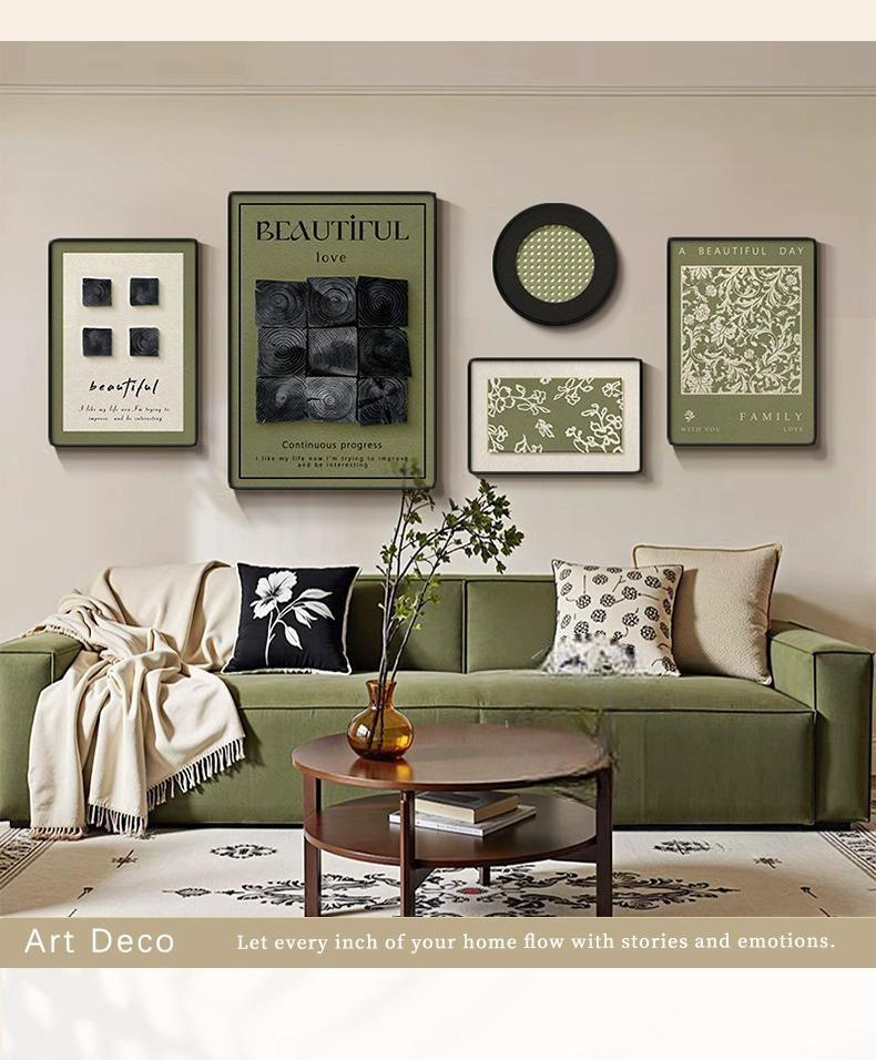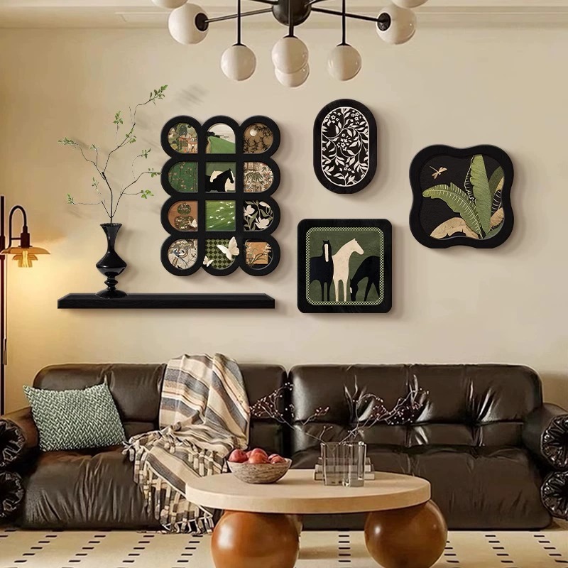 意式极简客厅装饰画中古风高级感沙发背景墙挂画法式抽象组合壁画