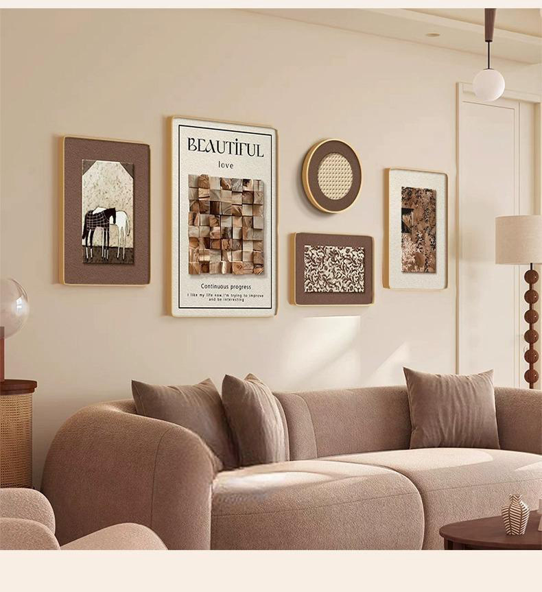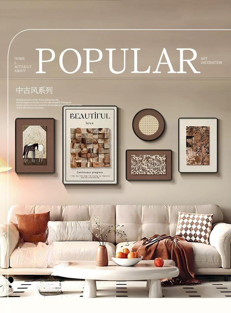 法式中古风客厅装饰画高级艺术组合壁画美拉德复古沙发背景墙挂画