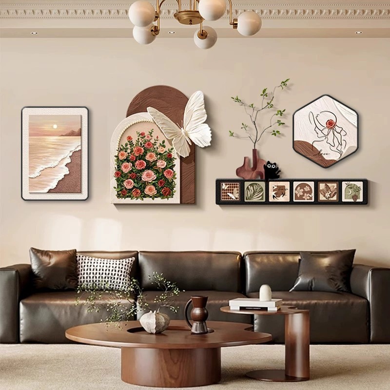 法式奶油风客厅装饰画中古风沙发背景墙挂画蝴蝶2025新款组合壁画