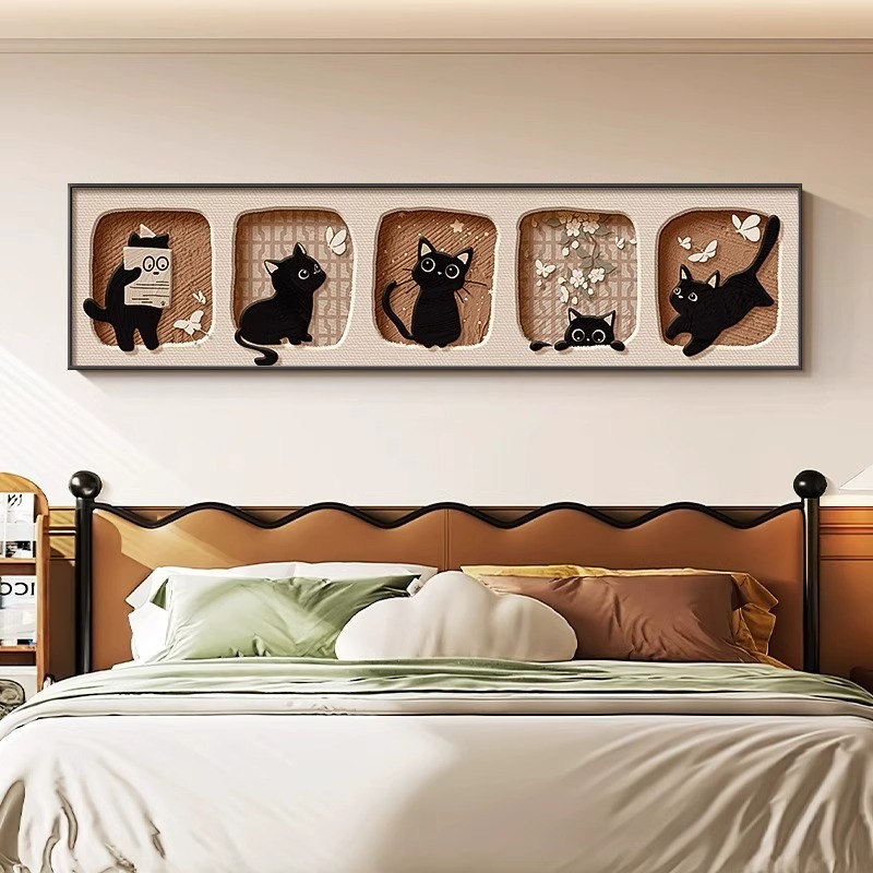 猫中世スタイル 2025 新しい寝室のベッドサイド装飾絵画漫画レトロ子供部屋吊り絵画マスターベッドルーム壁画