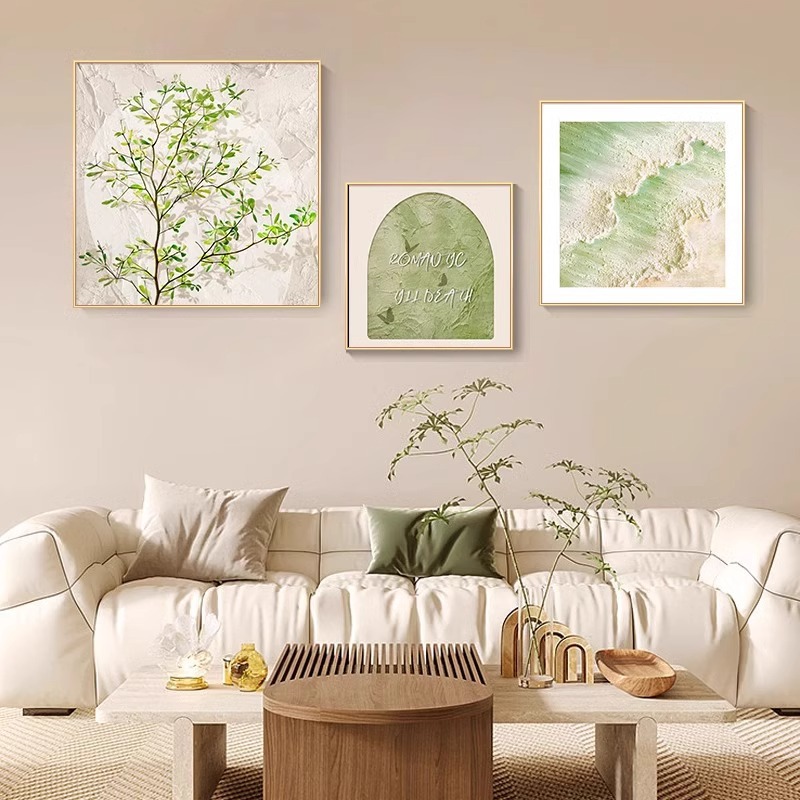 北欧クリーム風客間装飾画小清新緑植ソファー背景壁壁画抽象芸術レストラン掛け画