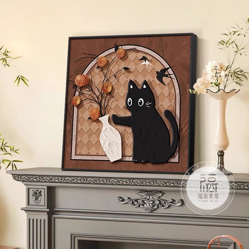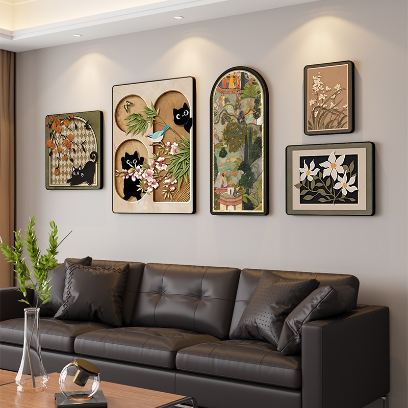 2025客厅装饰画美法式复古沙发背景墙挂画高级感猫咪艺术组合壁画
